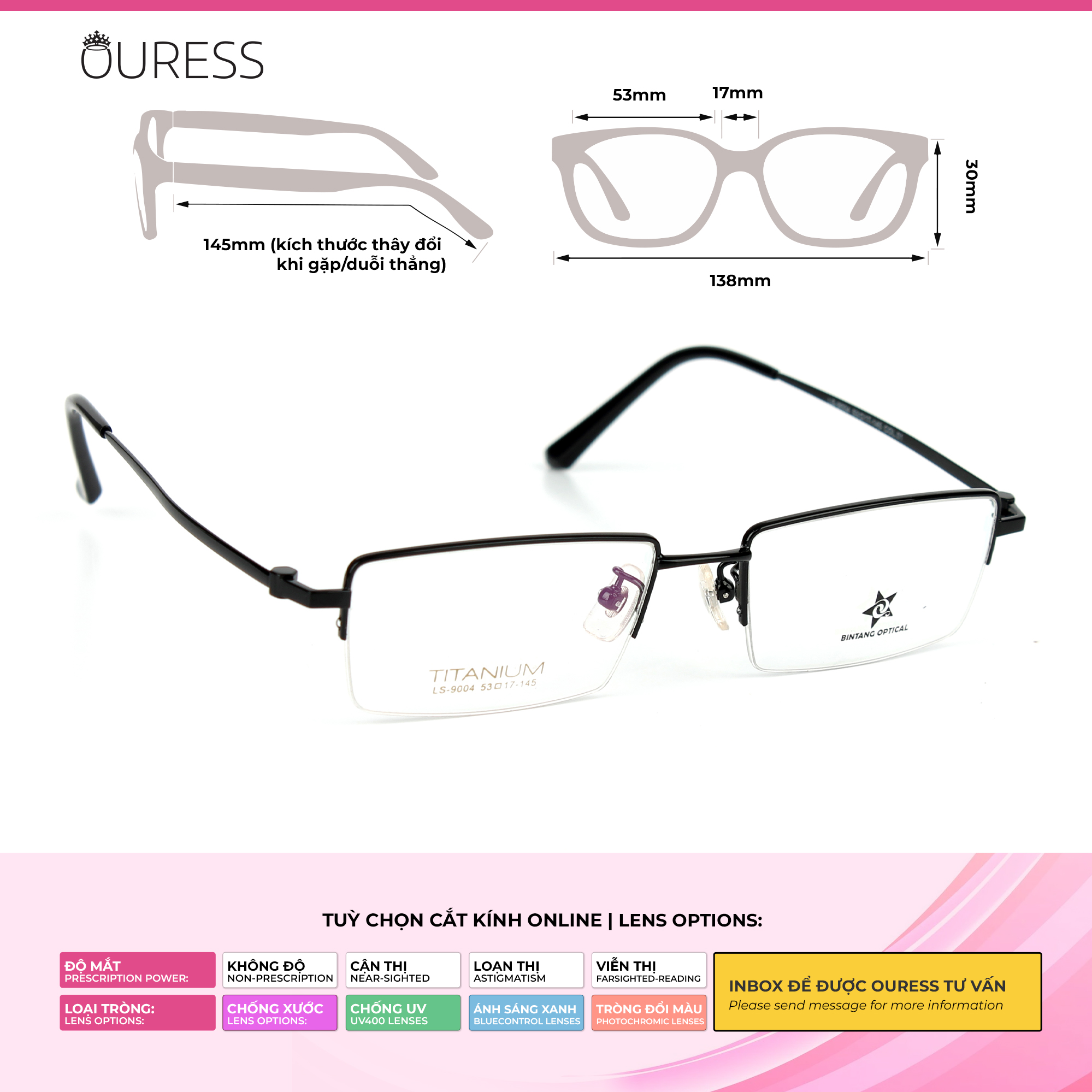 ==>> Gọng kính nửa khung (xẻ cước) titan thực sự là phụ kiện mang đến sự tự tin, Sang trọng và cao cấp.