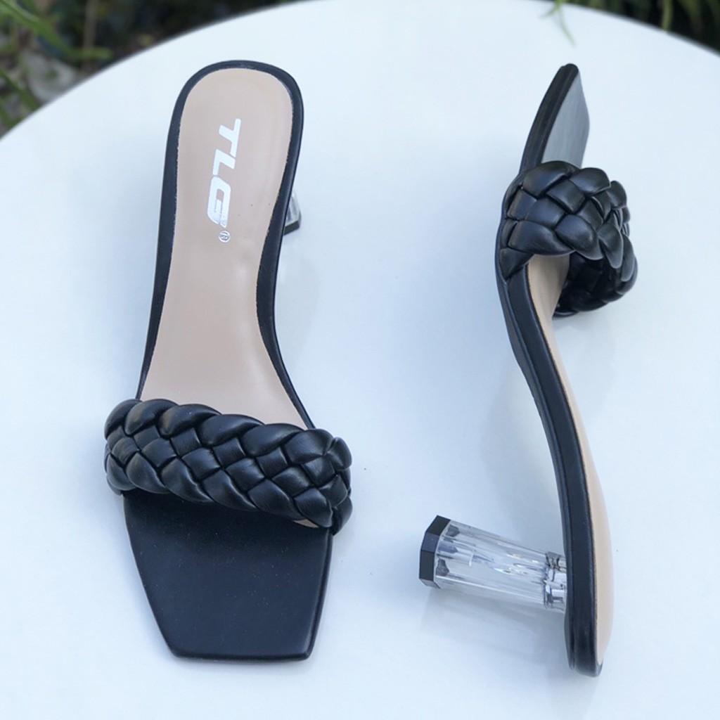 - Dép nữ cao gót quai ngang một bản TRường Hải màu đen gót vuông 8cm da mềm DN139 thiết kế với kiểu dáng ôm chân, thon gọn, thoải mái di chuyển mà không lo