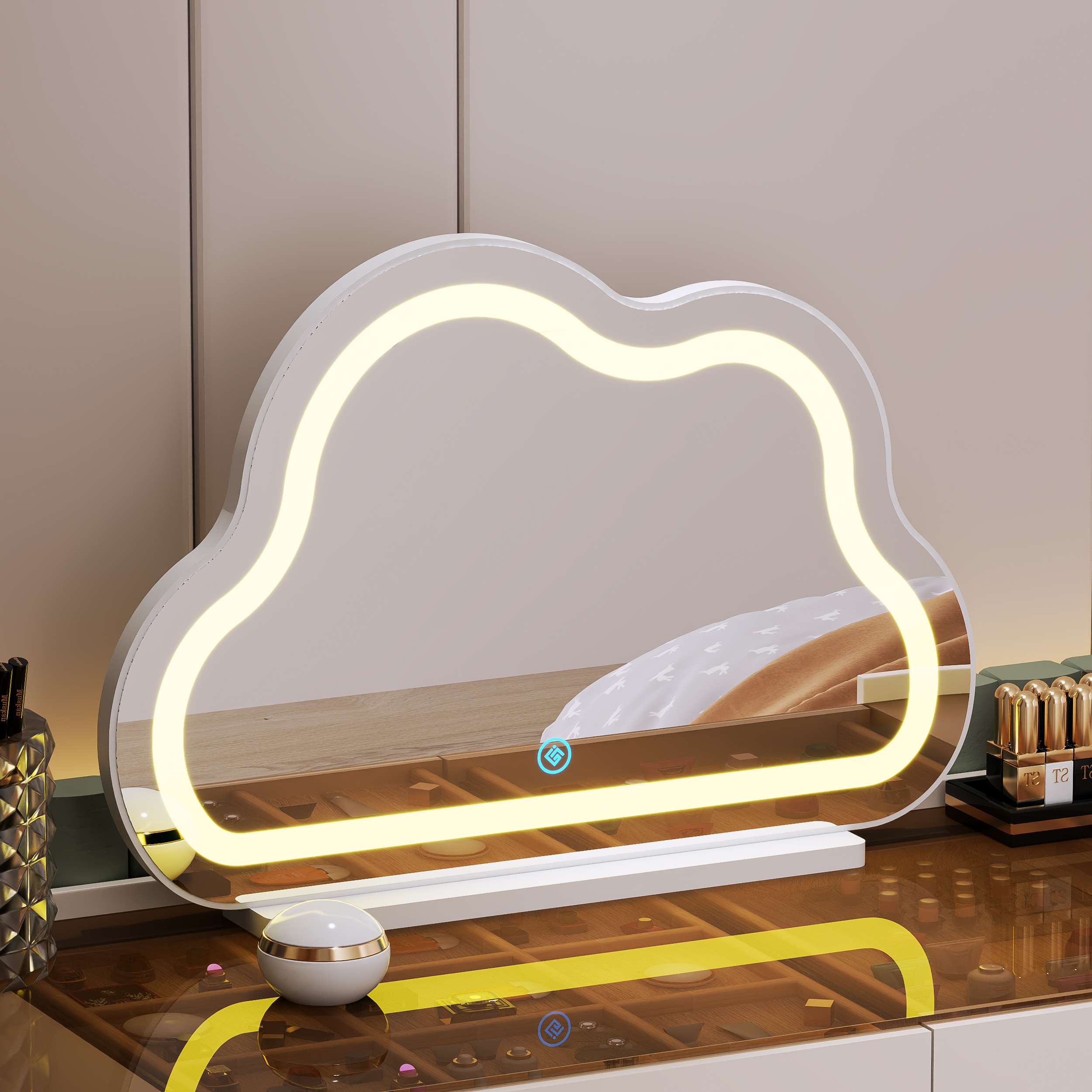 Bàn trang điểm gương đèn LED cảm ứng cho những cô nàng hiện đại