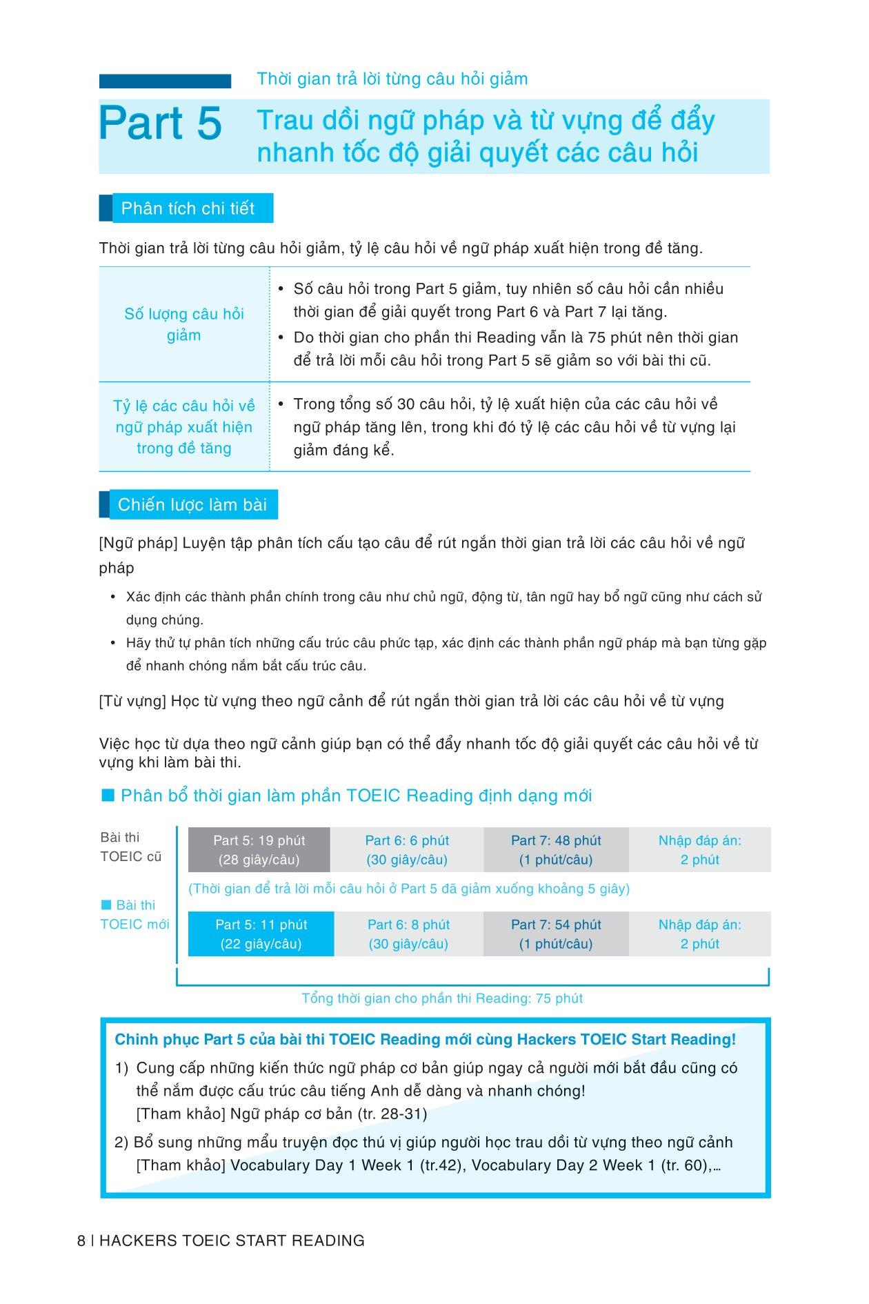 Sách tập trung chú trọng vào luyện kiến thức, kỹ năng chứ không phải chỉ chuyên luyện đề thi TOEIC. Nội dung được chia thành 3 phần rõ ràng như sau: