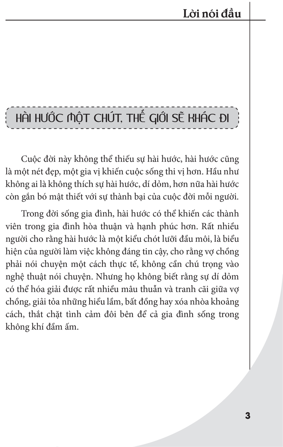 Cuộc đời này không thể thiếu sự hài hước, hài hước cũng là một nét đẹp, một gia vị khiến cuộc sống thú vị hơn. Hầu như không ai là không thích hài hước, dí dỏm, hơn nữa hài hước còn gắn bó mật thiết với sự thành bại của cuộc đời mỗi người.