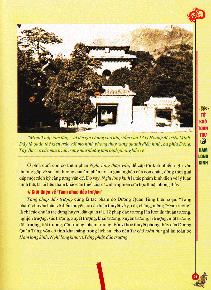“Hám long kinh” của Tổ sư phong thủy Dương Quân Tùng được xem là một trước tác kinh điển chuyên luận về long mạch, được đưa vào “Tứ khố toàn thư” - bộ bách khoa toàn thư lớn nhất của Trung Quốc cổ đại.