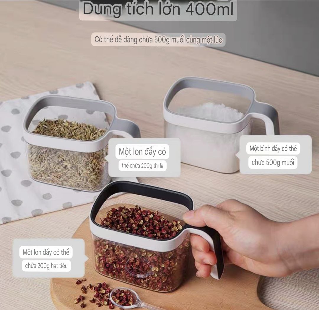 ✔️ Hộp đựng tiện lợi – Nắp đậy kín, có thìa lấy gia vị giúp giữ nguyên hương vị & luôn khô ráo.