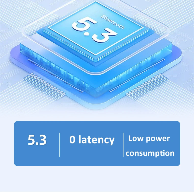- Chip Bluetooth 5.3 mới nhất mang đến khả năng truyền tải tín hiệu nhanh chóng, ổn định, độ trễ thấp và phạm vi kết nối rộng (lên đến 20 mét).