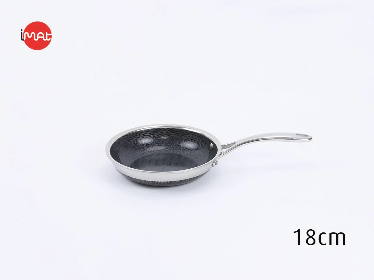 Chảo iMat Hybrid kết hợp giữa inox với chống dính nên đặc biệt thích hợp để chiên rán thực phẩm hoặc áp chảo thịt. Thân 3 lớp giúp dẫn và giữ nhiệt tối đa, lòng chảo sử dụng công nghệ Blackcube kết hợp lớp tráng không dính Silkware của hãng Daikin Nhật Bản, chiên ngon và không dính. Dùng mọi bếp: Từ, ga, hồng ngoại
