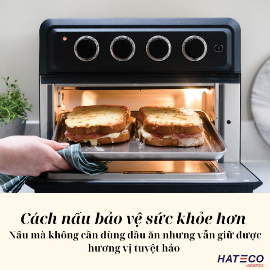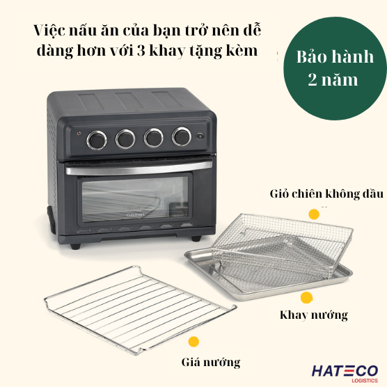 - Thiết kế kết hợp nồi chiên không dầu và lò nướng, khoang lò rộng, cửa kính trong suốt, nhiều phụ kiện đi kèm.