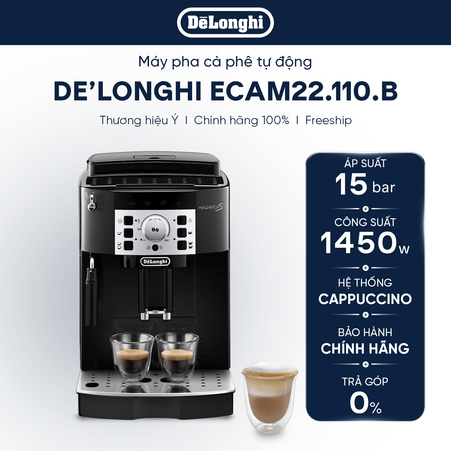 Máy pha cà phê tự động DeLonghi Magnifica S ECAM22.110.B | Perfetto Việt Nam