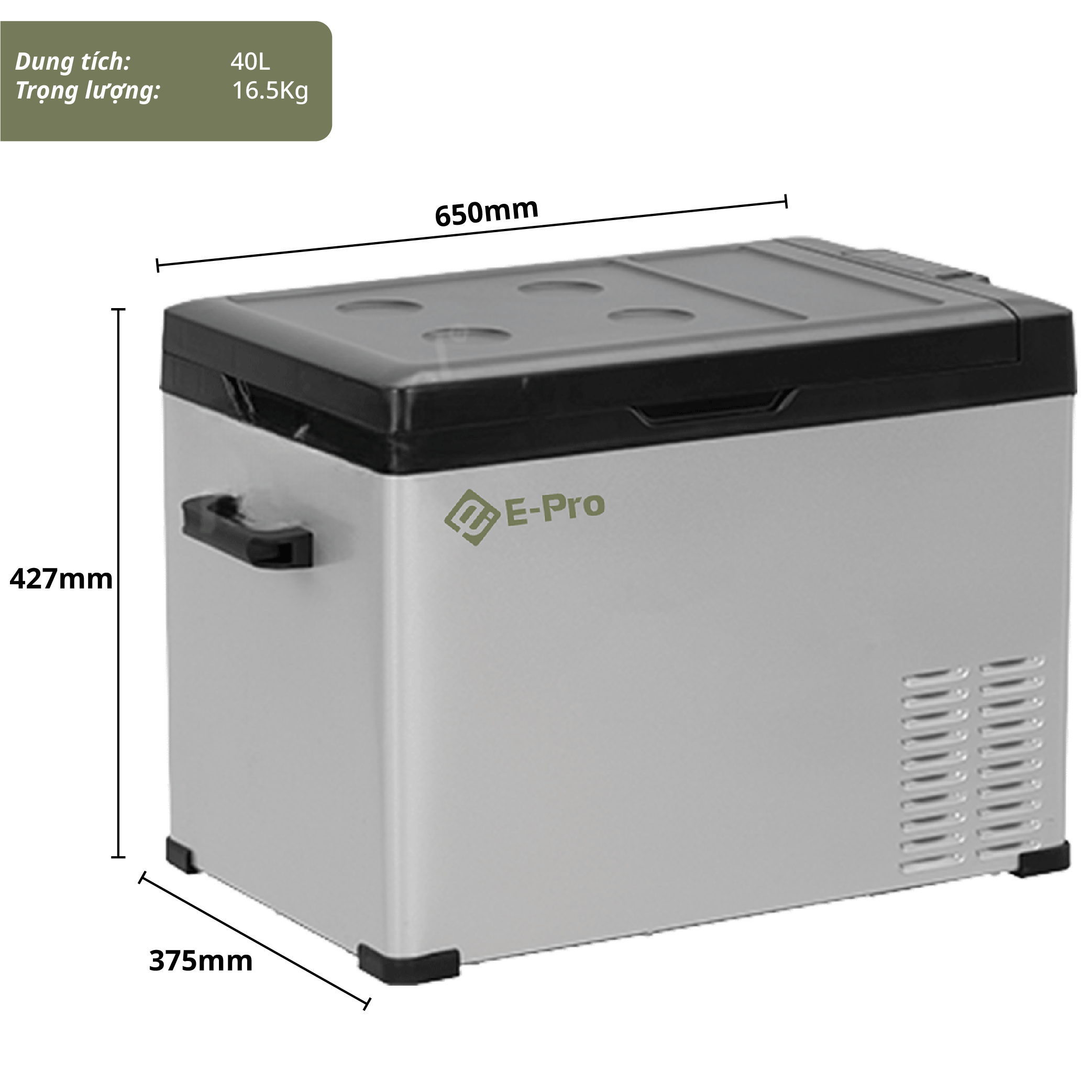 Sản phẩm Tủ lạnh di động E-pro dòng C tiện dụng cho các hoạt động ngoài trời, không thể thiếu cho những hành trình đường dài, giúp giữ cho thực phẩm luôn được tươi mới