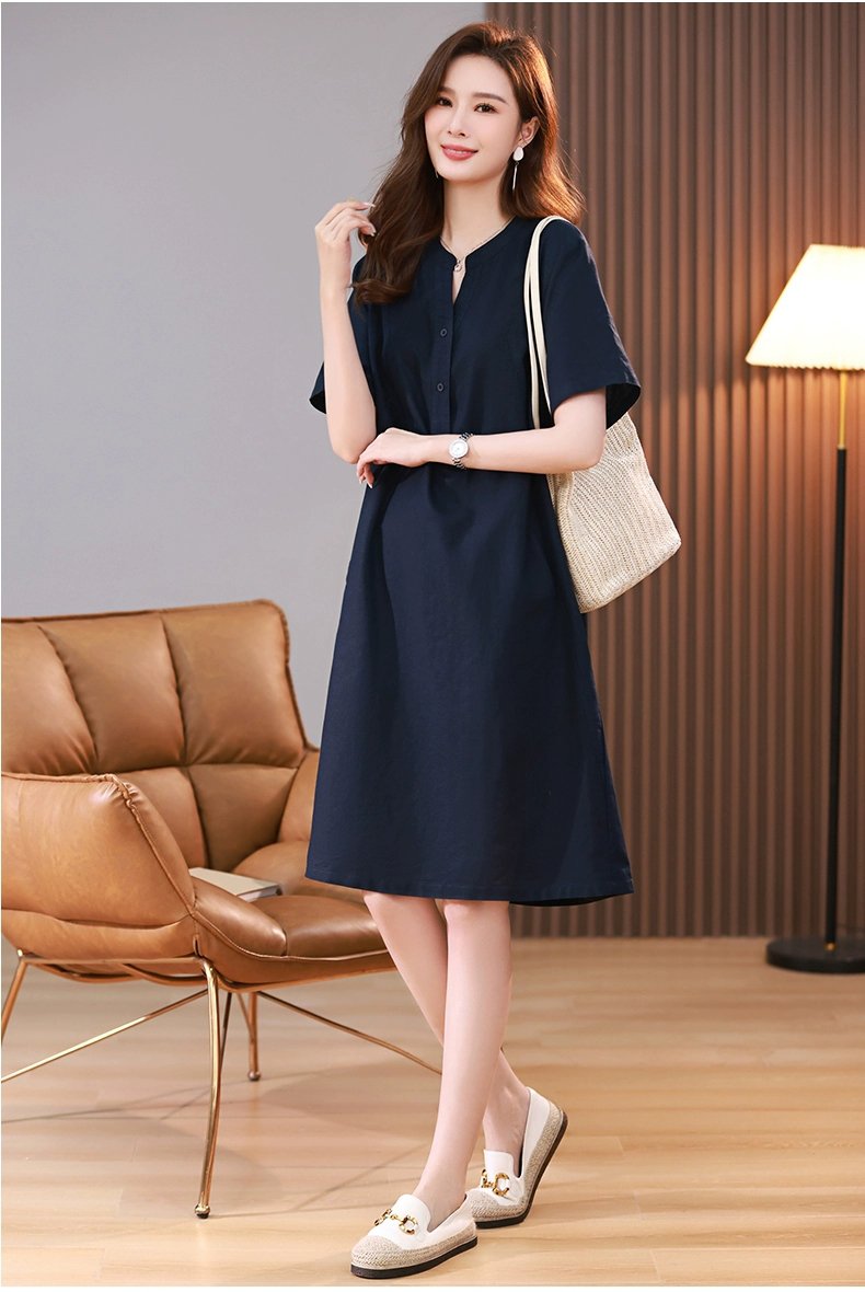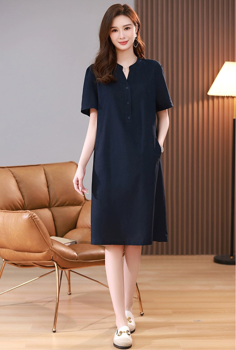 ✨Hàng sẵn Đầm nữ linen nữ tính nhẹ nhàng, lịch thiệp, tao nhã màu xanh đen da199