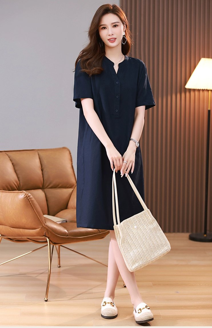 ღ THÔNG TIN SẢN PHẨM:   Tên sản phẩm: Đầm sơ mi xanh navy   Chất liệu: Chất gân ý   Chi tiết sản phẩm: không lót, không túi   Thông số size: S, M, L,