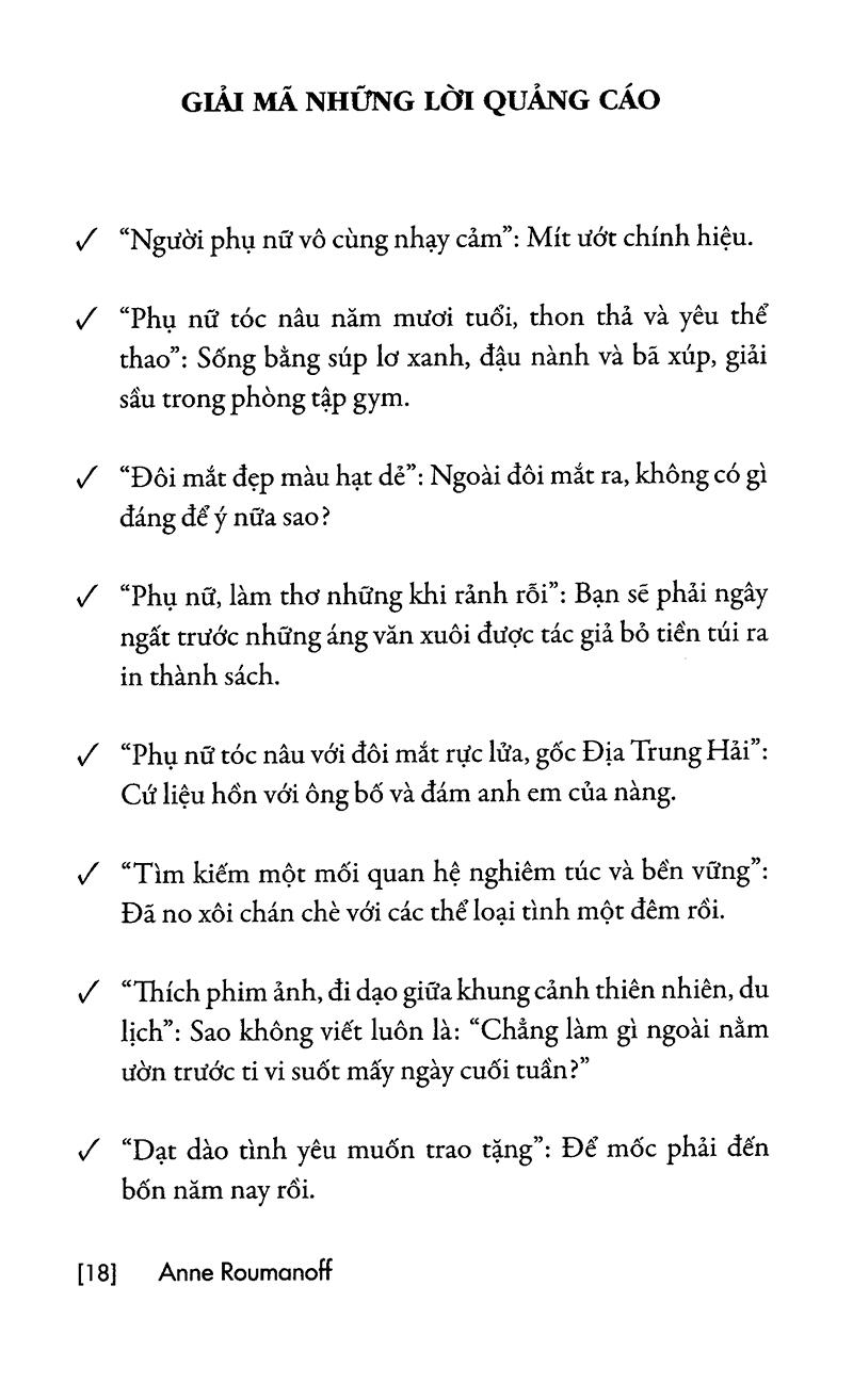 Dù đang trong hành trình tìm kiếm hay đã có được nửa kia của đời mình, bạn cũng tìm thấy chính mình trong cuốn sách, và mỉm cười nhận ra rằng từng giây phút trong cuộc đời này thật đáng sống, đáng trân trọng biết bao .