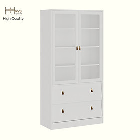 ✨HAPPY FURNITURE , Kệ sách cửa kính 2 ngăn kéo - CALYN , KSA_107 , 90cm x 39cm x 176cm DxRxC