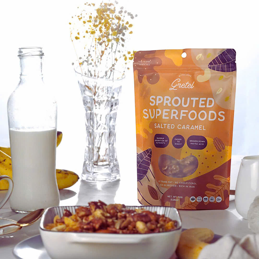 Hạt nảy mầm là gì? Hạt nảy mầm là phiên bản tinh túy hơn của hạt điều thông thường, trải qua quá trình ngâm và kích hoạt enzyme tự nhiên, giúp loại bỏ axit phytic và các chất ức chế tiêu hóa. Nhờ đó, hạt điều trở nên giòn hơn, bùi béo hơn và đặc biệt dễ hấp thu hơn. Lợi ích sức khỏe vượt trội Hạt điều nảy mầm không chỉ là một món ăn vặt ngon miệng mà còn mang lại nhiều lợi ích cho sức khỏe:Hấp thụ dinh dưỡng tốt hơn – Tăng khả năng hấp thu protein, vitamin và khoáng chất.Hỗ trợ tiêu hóa – Loại bỏ các chất gây khó tiêu có trong hạt điều thông thường.Tăng cường năng lượng tự nhiên – Giàu chất xơ và chất béo lành mạnh, giúp duy trì năng lượng ổn định suốt cả ngày. Ăn vặt thời đại mới – Lựa chọn thông minh từ thương hiệu Singapore Xu hướng ăn vặt lành mạnh đang phát triển mạnh mẽ, và Gretel – thương hiệu đến từ Singapore – đang tiên phong trong việc mang đến những sản phẩm healthy snack chất lượng cao. Sản phẩm của Gretel đã thành công tại Singapore, Philippines và Ấn Độ, được người tiêu dùng tin tưởng và yêu thích. Giờ đây, Gretel chính thức có mặt tại Việt Nam! Hãy cùng trải nghiệm hạt điều nảy mầm tẩm vị thơm ngon, không chiên dầu, không chất bảo quản, mang đến trải nghiệm ăn vặt lành mạnh Hạt điều nảy mầm vị Caramel Muối Khối lượng tịnh : 40g, 100g,150g