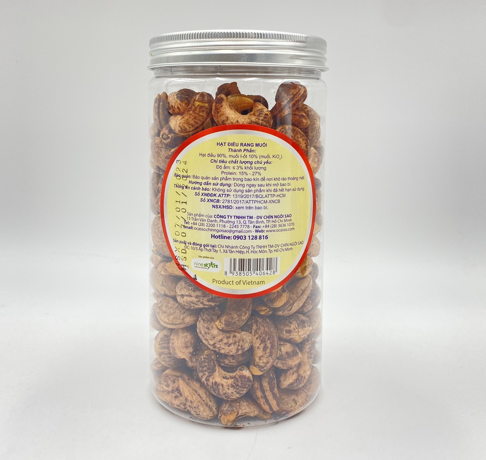 Nine Stars đã nghiên cứu rất kỹ nguyên liệu hạt điều trước khi cho chế biến. Mỗi loại điều, giống điều hay vùng trồng cũng cho ra chất lượng hạt điều khác nhau, nên việc am hiểu nguyên liệu hạt điều là điều kiện rất cần thiết cho sản phẩm chế biến hạt điều nguyên. Sản phẩm hạt điều lụa rang muối loại cồ O’Casso có độ chắc hạt, to mẩy, béo thơm, giòn tan, cực kỳ dễ bóc vỏ.