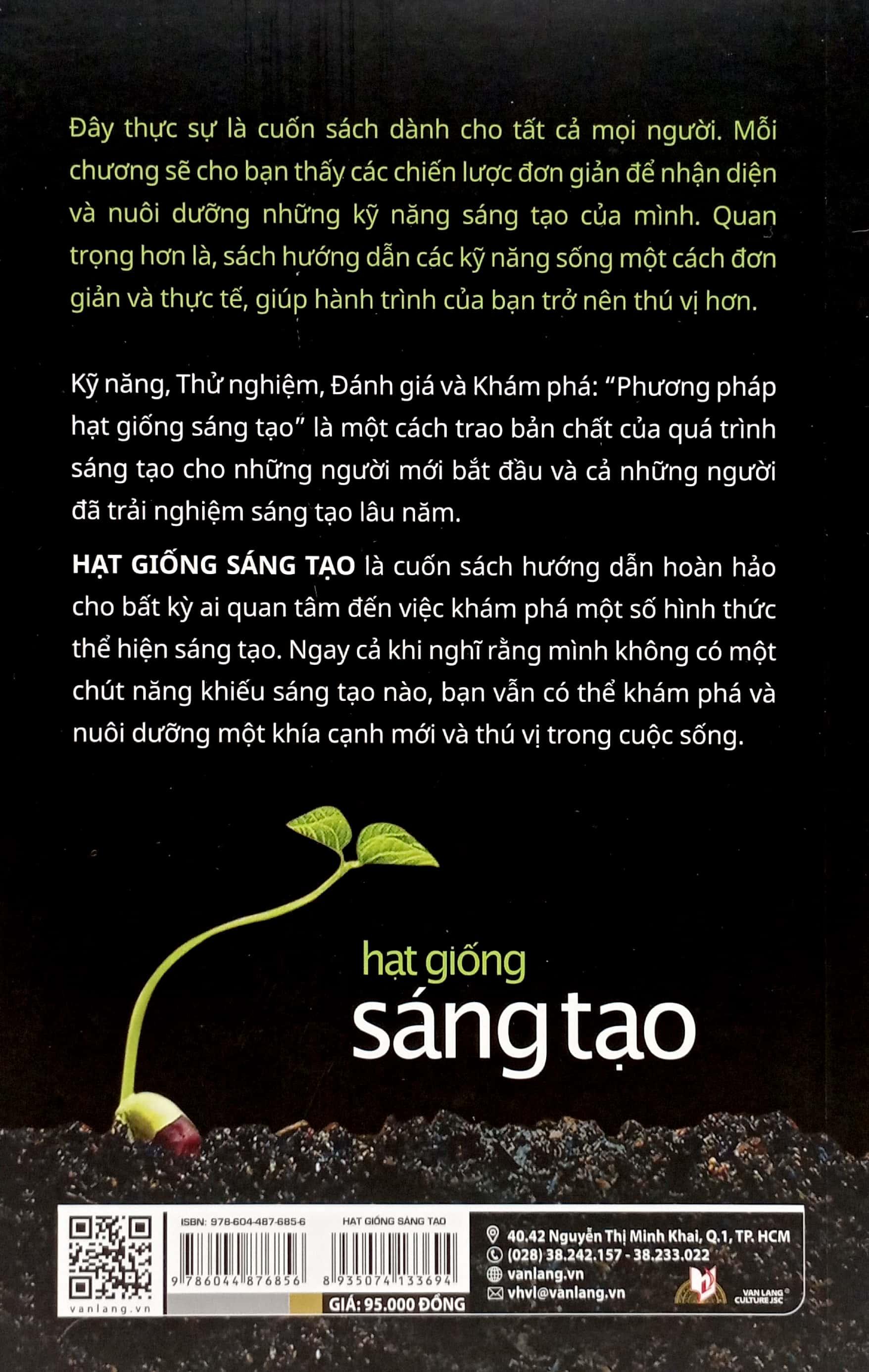 Hạt giống sáng tạo là cuốn sách hướng dẫn hoàn hảo cho bất kỳ ai quan tâm đến việc khám phá một số hình thức thể hiện sáng tạo. Ngay cả khi nghĩ rằng m.ình không có một chút năng khiếu sáng tạo nào, bạn vẫn có thể khám phá và nuôi dưỡng một khía cạnh mới và thú vị trong cuộc sống.