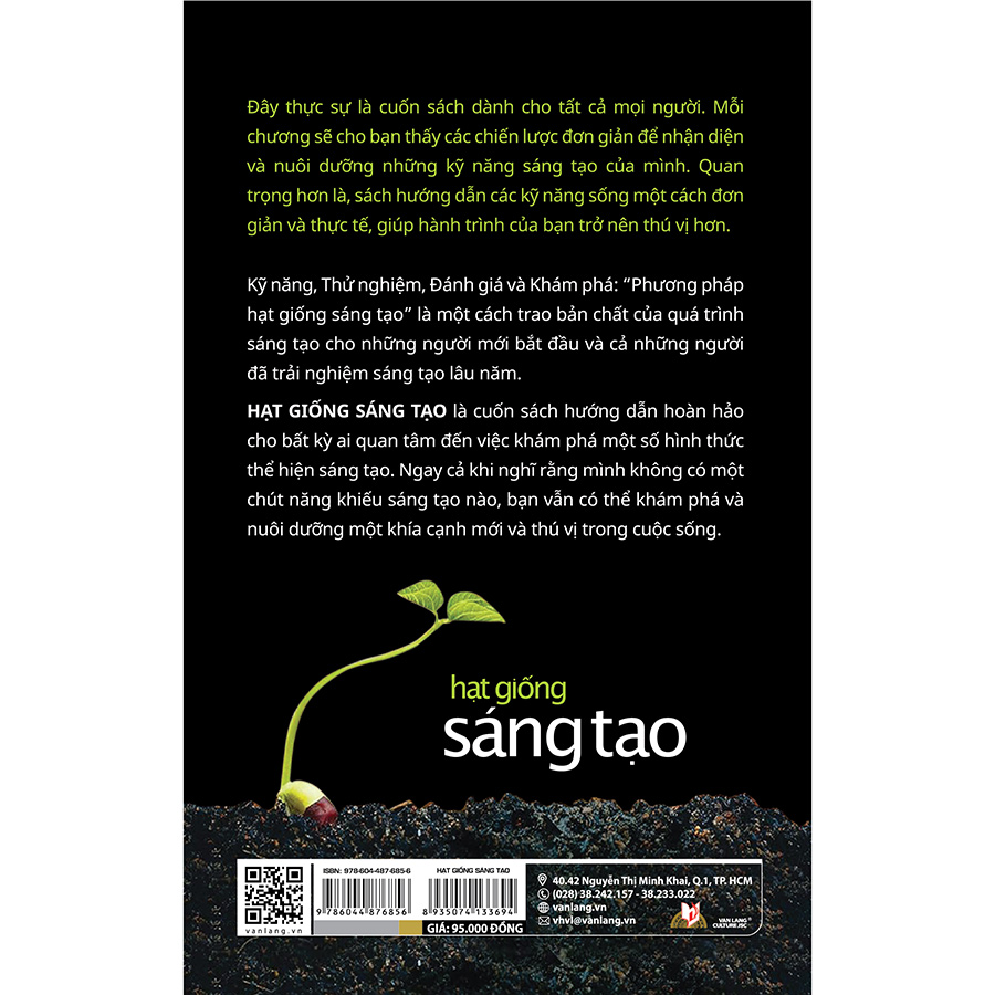 Hạt giống sáng tạo là cuốn sách hướng dẫn hoàn hảo cho bất kỳ ai quan tâm đến việc khám phá một số hình thức thể hiện sáng tạo. Ngay cả khi nghĩ rằng mình không có một chút năng khiếu sáng tạo nào, bạn vẫn có thể khám phá và nuôi dưỡng một khía cạnh mới và thú vị trong cuộc sống.