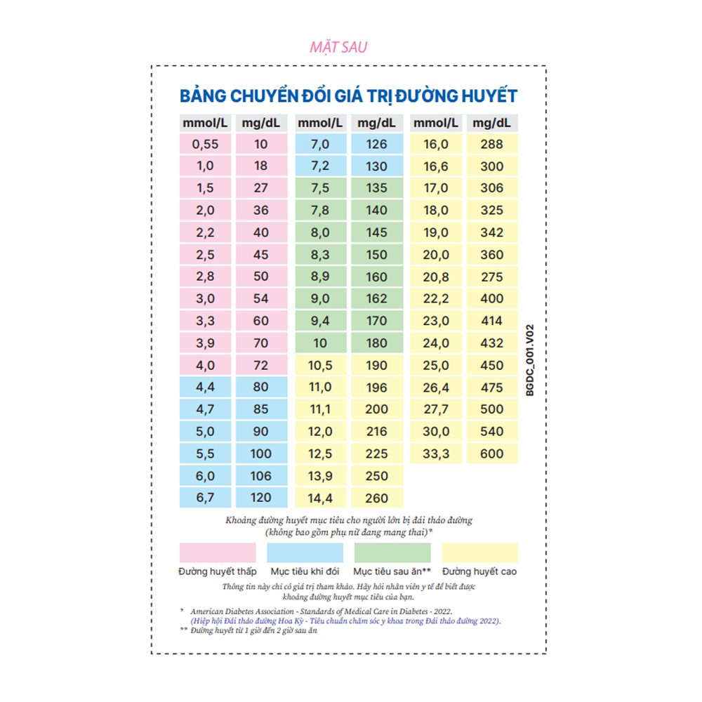 - Tên sản phẩm: Bảng chuyển đổi giá trị đường huyết