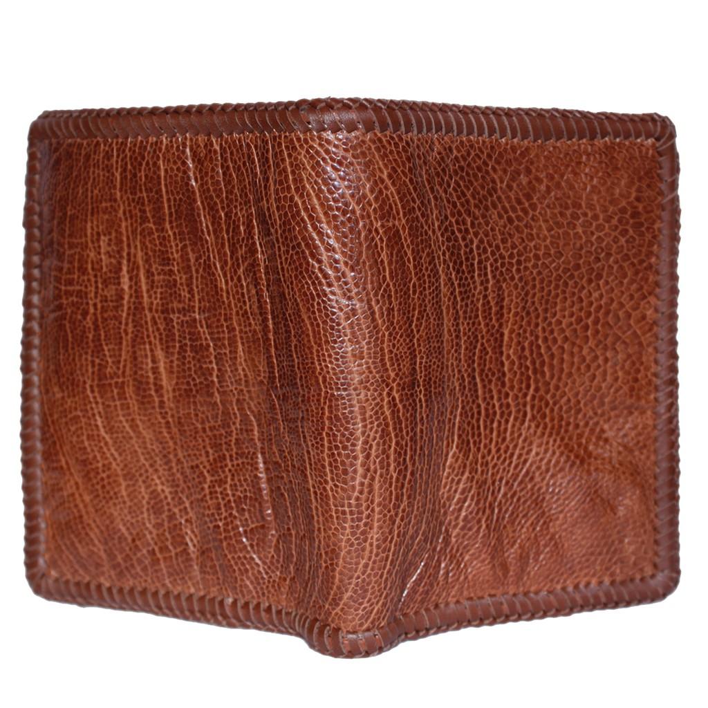 ✨HC2450 - Bóp nam Huy Hoàng da đà điểu da trơn đan viền kiểu đứng màu vàng bò
