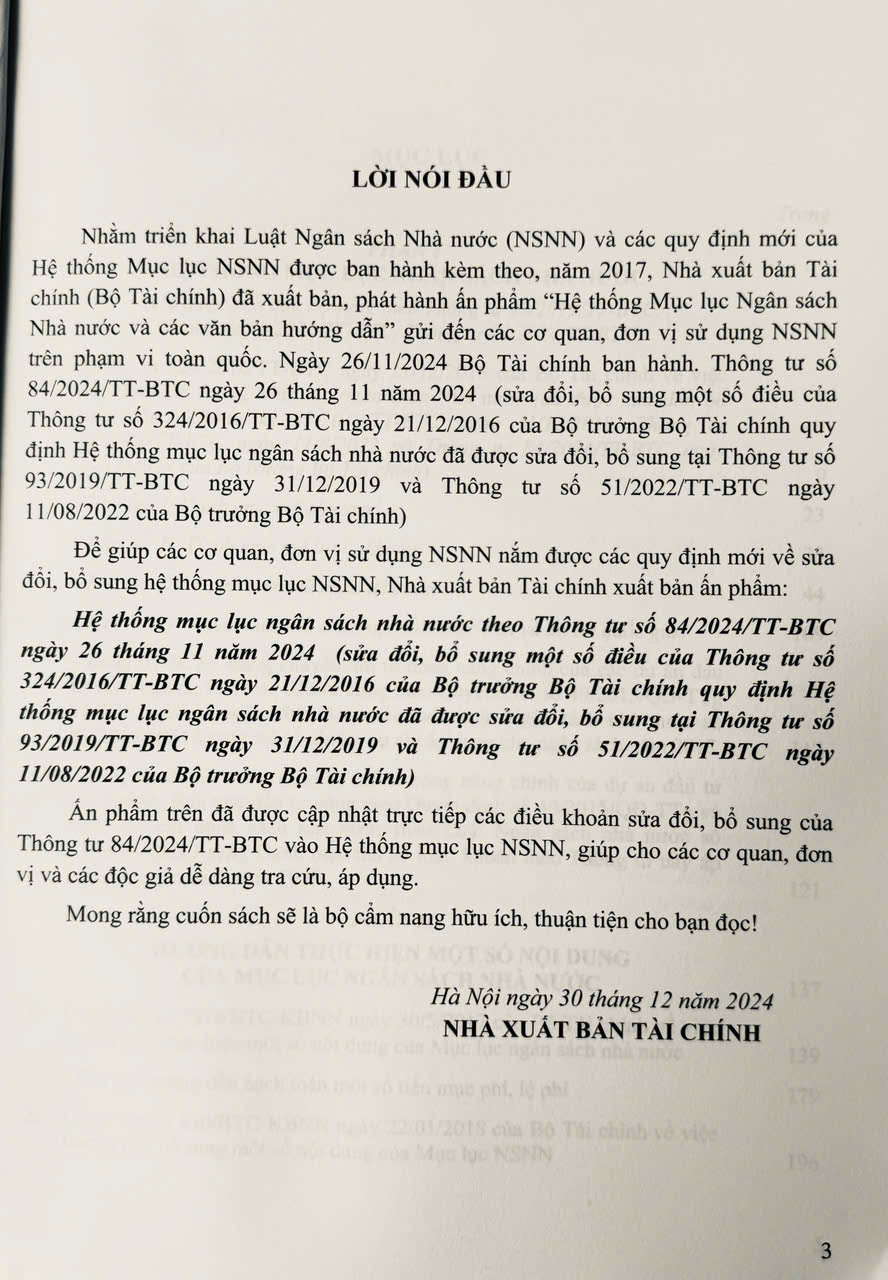 Sách - Hệ Thống Mục Lục Ngân Sách Nhà Nước (Đã được sửa đổi theo thông tư số 84/2024/TT-BTC ngày 26 tháng 11 năm 2024)