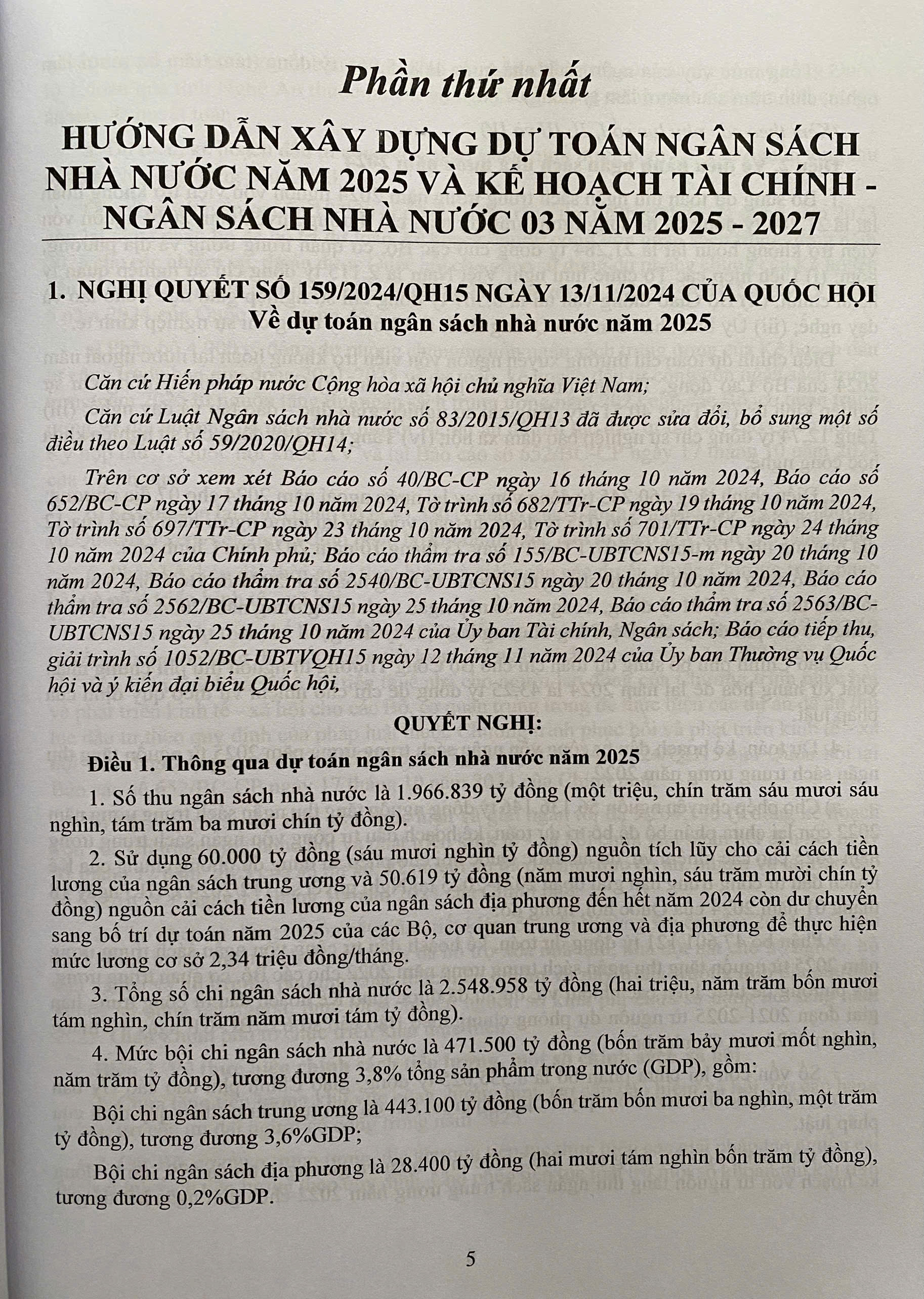 Phần thứ nhất. HƯỚNG DẪN XÂY DỰNG DỰ TOÁN NGÂN SÁCH NHÀ NƯỚC NĂM 2025 VÀ KẾ HOẠCH TÀI CHÍNH - NGÂN SÁCH NHÀ NƯỚC 03 NĂM 2025 - 2027.