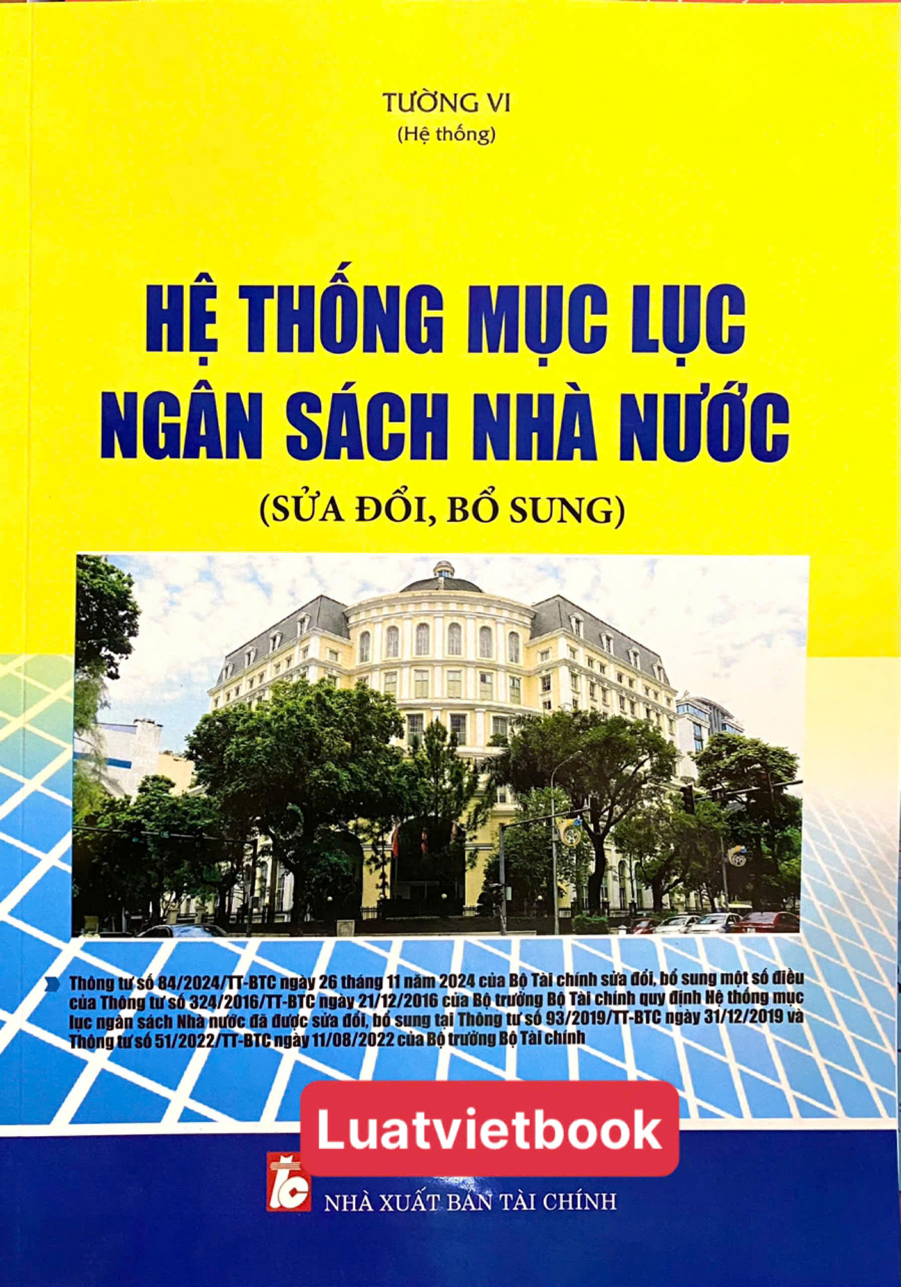 Ngày 26/11/2024, Bộ Tài chính ban hành Thông tư 84/2024/TT-BTC sửa đổi, bổ sung một số điều của Thông tư 324/2016/TT-BTC ngày 21/12/2016 quy định hệ thống mục lục ngân sách Nhà nước đã được
