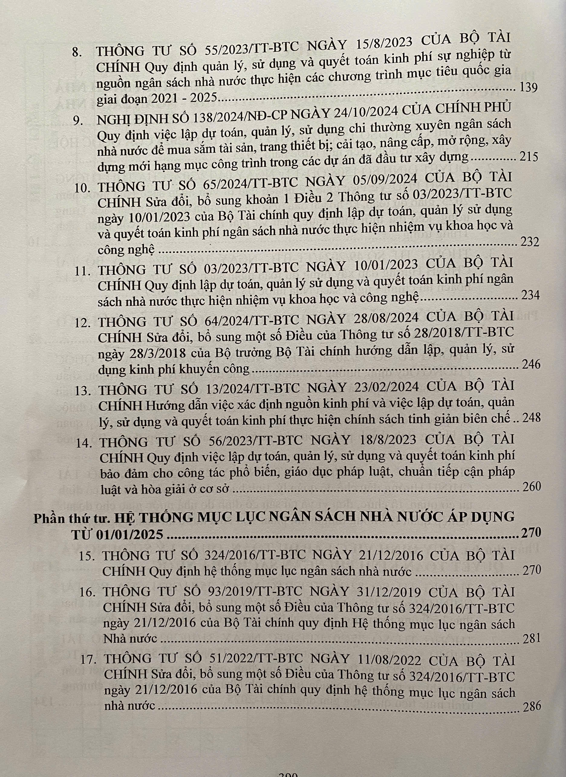 Phần thứ tư. HỆ THỐNG MỤC LỤC NGÂN SÁCH NHÀ NƯỚC ÁP DỤNG TỪ 01/01/2025