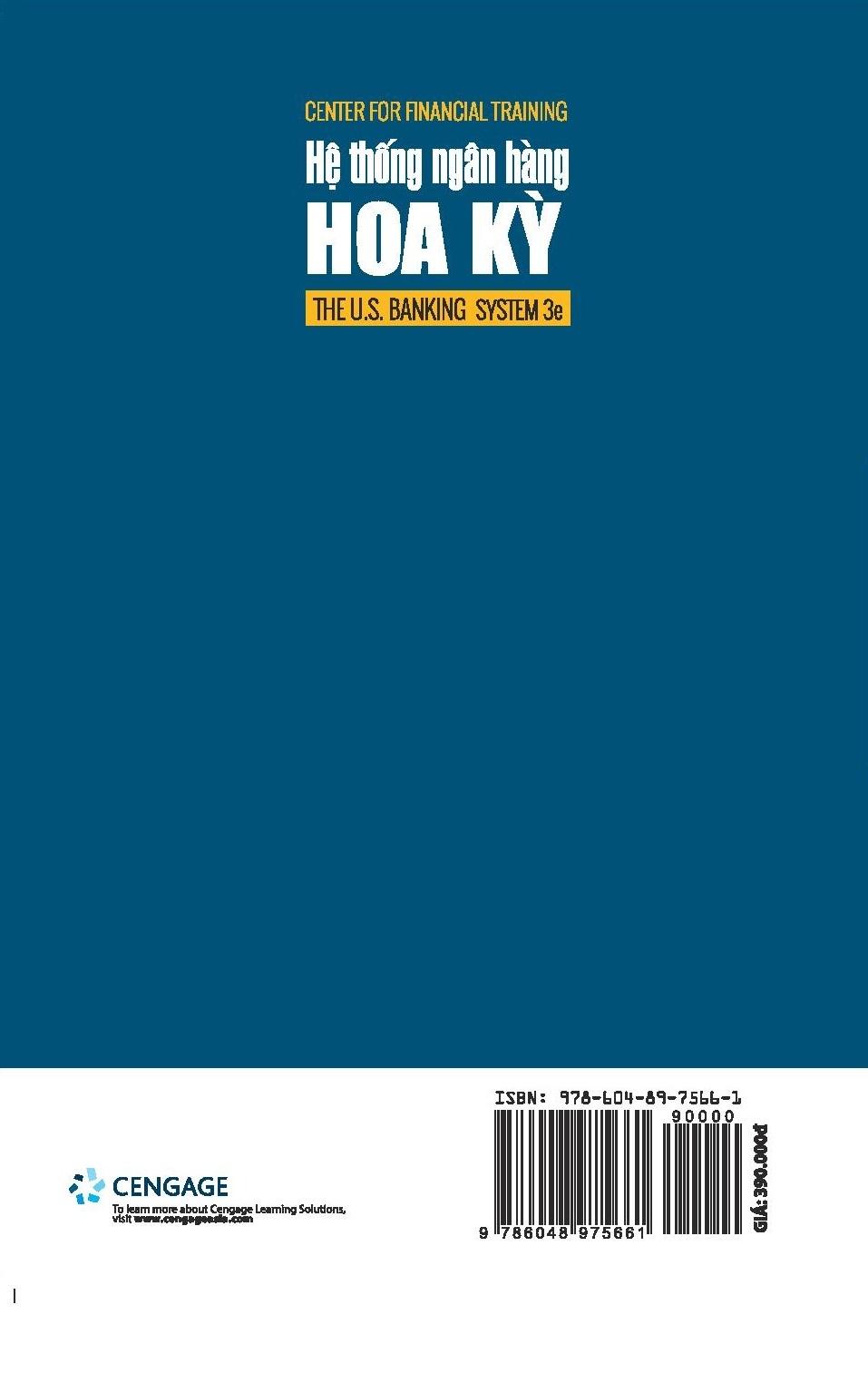 Hệ Thống Ngân Hàng Hoa Kỳ Mặc dù sự cạnh tranh ảnh hưởng của các trung tâm tài chính trên phạm vi toàn thế giới ngày càng trở nên khốc liệt, tuy nhiên, với vị trí là nền kinh tế số một thế giới, hoạt động trong lĩnh vực dịch vụ tài chính của Hoa Kỳ vẫn thu hút được sự chú ý của giới học thuật cũng như quản trị tại các tổ chức cung cấp dịch vụ tài chính và cơ quan quản lý nhà nước đối với dịch vụ tài chính trên phạm vi toàn cầu. Cuốn sách "Hệ thống ngân hàng Hoa Kỳ" do Trung tâm Đào tạo Tài chính phát hành nhằm cung cấp những nguyên tắc và thông lệ trong hoạt động ngân hàng và tín dụng tại Hoa Kỳ, thông qua đó giúp cho người đọc hiểu và nắm được những vấn đề cơ bản trong hoạt động ngân hàng ở quốc gia đang dẫn đầu thế giới trong lĩnh vực tài chính nói chung và ngân hàng nói riêng. Ngoài ra, cuốn sách cũng đề cập tới những vấn đề được quan tâm trong quá trình vận hành hoạt động ngân hàng như an toàn, gian lận và đạo đức; marketing ngân hàng và các cơ hội nghề nghiệp trong lĩnh vực ngân hàng tại Hoa Kỳ. Đặc biệt, sách có đính kèm tài khoản học trực tuyến Mindtap- giải pháp học Blended Learning nhằm tối ưu hóa việc giảng dạy cho các giảng viên, cung cấp công cụ học tập trực tuyến hiệu quả cho sinh viên, và tạo sự gắn kết hơn giữa giảng viên với sinh viên