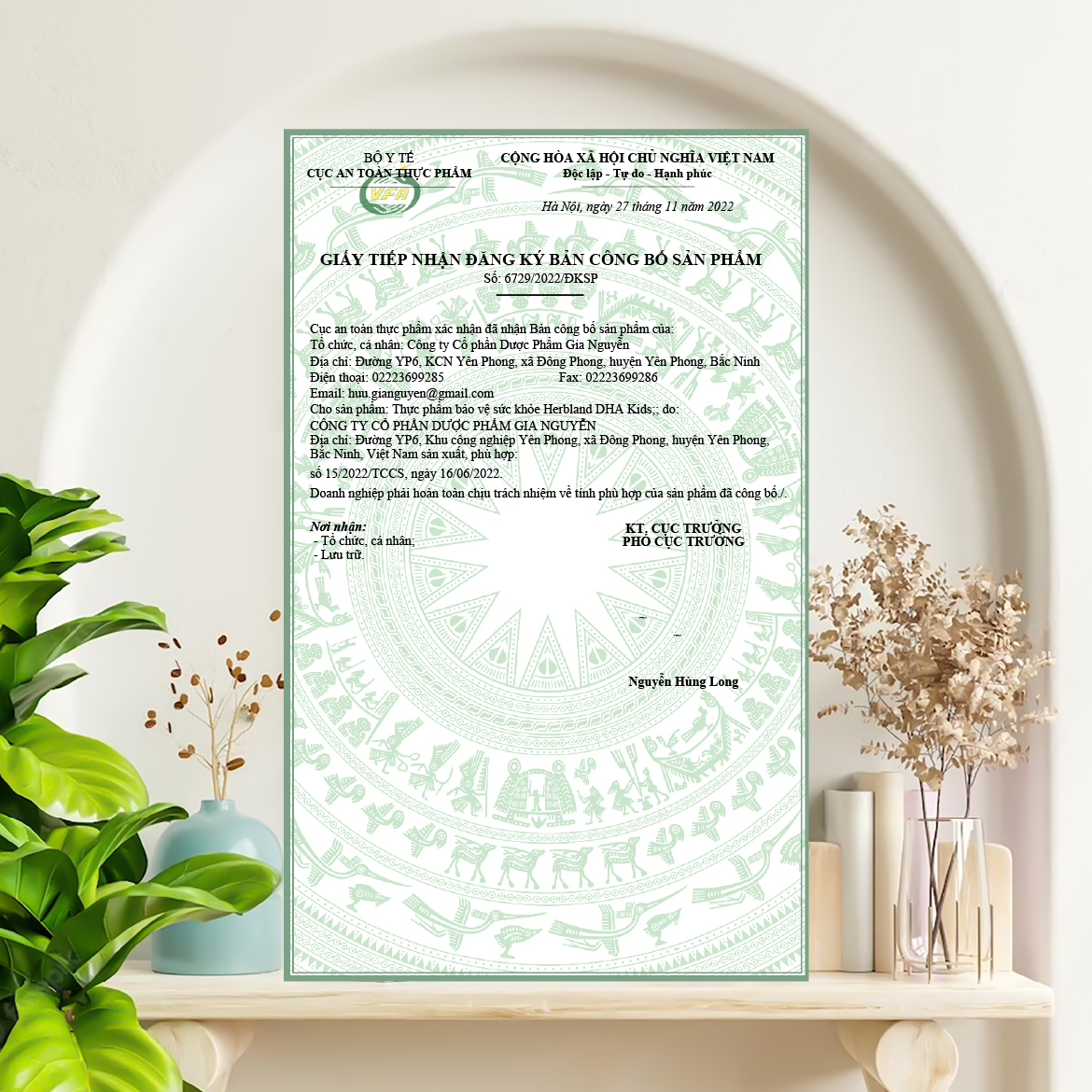 Mua tại TiktokHỖ TRỢ TỐT CHO NÃO BỘ VÀ THỊ LỰC CỦA TRẺ Herbland DHA Kids là sản phẩm đầu tiên chứa DHA từ dầu tảo được sản xuất tại Việt Nam, với nguồn nguyên liệu dầu tảo chất lượng cao nhập khẩu từ Châu Âu. Herbland DHA Kids có mùi vị dễ chịu hơn so với các sản phẩm DHA từ dầu cá, phù hợp cho trẻ nhỏ. Sản phẩm có công dụng vượt trội trong việc bổ sung DHA, vitamin A, vitamin E hỗ trợ tốt cho não bộ và thị lực của trẻ. Bảng thành phần: Hàm lượng cho 1ml: Dầu tảo (Algae oil)-Nhập khẩu từ Châu Âu: 500mg Chứa DHA (Docosahexaenoic acid): 200mg Dầu Olive: 100mg Vitamin E: 5 IU (DL-alpha Tocopheryl acetat) Vitamin A: 200IU (Retinyl palmital) Phụ liệu: Hương tự nhiên (Tinh dầu hương thảo, tinh dầu chanh, Hương cam tự nhiên), Chất độn (Caprylic/capric triglycerid) vừa đủ 1ml Cách dùng: