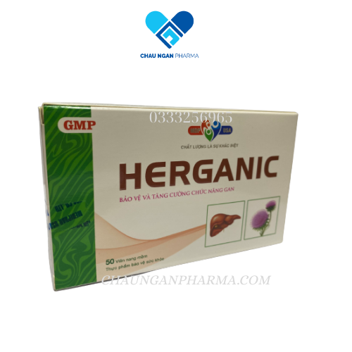 Gan là cơ quan thải độc chính, là lá chắn tự nhiên không thể thiếu đối với cơ thể. Rối loạn chức năng gan gây ảnh hưởng nghiêm trọng đến sức khỏe. Có rất nhiều nguyên nhân làm suy giảm chức năng gan, chính vì thế bạn cần bổ sung sản phẩm HERGANIC giúp tăng cường chức năng giải độc gan. Đồng thời cung cấp những hợp chất vitamin cần thiết để tái tạo và phát triển các tế bào gan mới. Thành phần : Mỗi viên nang mềm chứa: Arginine HCL………………………………………………………………………200,0 mg L-Ornithin L-Aspartate………………………………………………………….50,0 mg Silymarin…………………………………………………………………………….30,0mg Magnesium lactate………………………………………………………………25,0 mg Lentinan 30% (chiết xuất nấm hương)…………………………………,0 mg Vitamin B1…………………………………………………………………………1,8 mg Vitamin B6…………………………………………………………………………1,2 mg Vitamin B9…………………………………………………………………………300,0 mcg Vitamin B12……………………………………………………………………….4,0 mcg Quy cách: Hộp 5 vỉ x 10 viên nang mềm Công dụng : Hỗ trợ mát gan, giúp giải độc gan và bảo vệ gan, tăng cường chức năng gan Đối tượng sử dụng: Những chức năng gan suy giảm do: viêm gan cấp và mãn tính, xơ gan. Người uống nhiều rượu, bia, sử dụng thuốc có hại cho gan. Những người nóng trong, mẩn ngứa, mề đay, vàng da, chán ăn, mệt mỏi do chức năng gan kém. Thời hạn sử dụng 36 tháng kể từ ngày sản xuất. Hạn sử dụng cụ thể được in trên mỗi hộp. Cách thức bảo quản Bảo quản nơi khô ráo, thoáng mát, tránh ánh nắng mặt trời trực tiếp. Để xa tầm tay của trẻ em. Lưu ý: Sản phẩm này không phải là thuốc, không có tác dụng thay thế thuốc chữa bệnh.