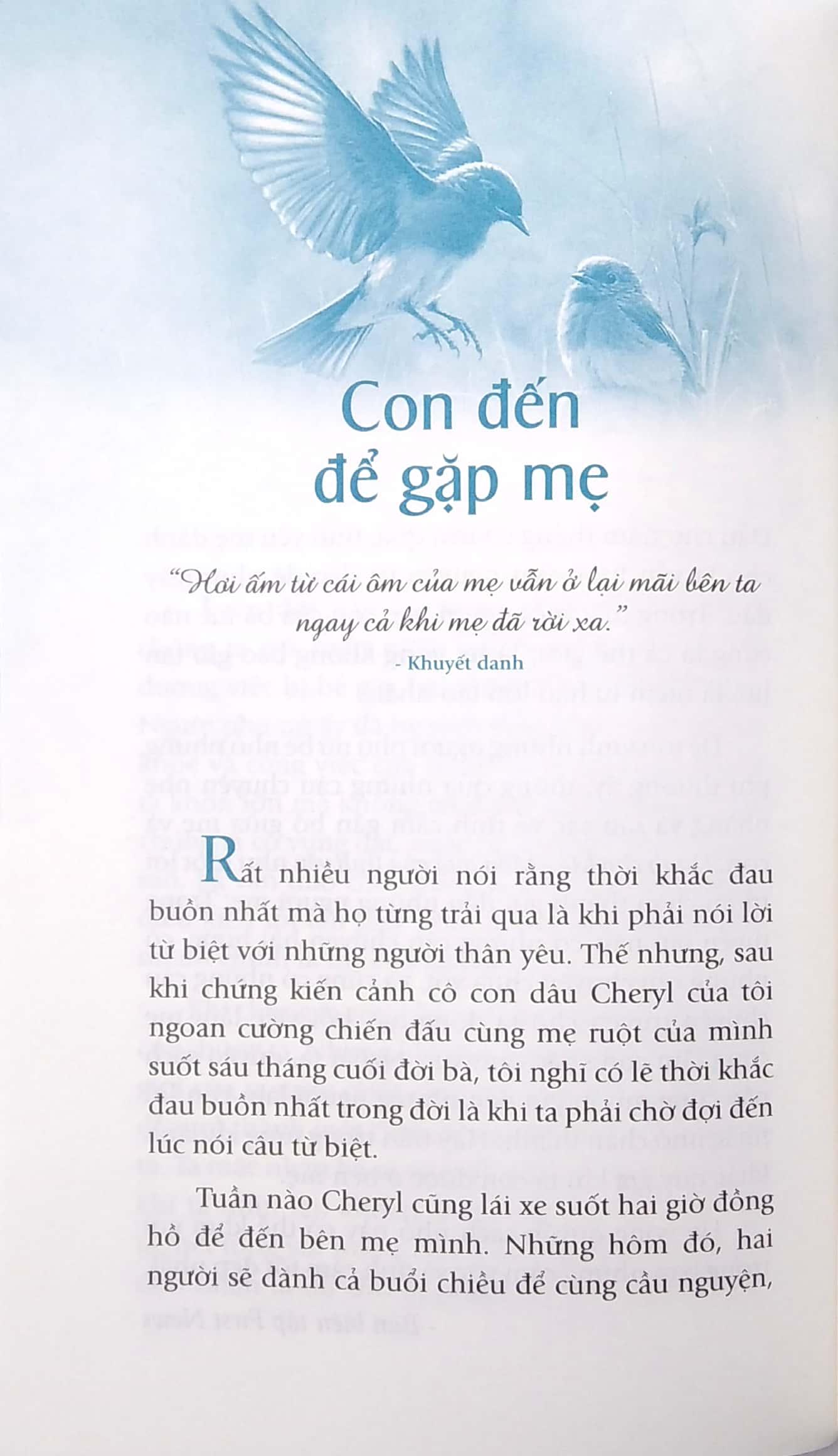 Trong những trang sách, bạn sẽ tìm lại được những phút giây đồng cảm trong tình yêu thương, cảm xúc về Mẹ, tìm về ký ức tuổi thơ thân thương gắn bó bên Mẹ, và cả về lỗi lầm, những suy tư trăn trở, về tất cả những gì Mẹ đã hy sinh cho chúng ta. Chúng ta hãy cùng đọc để suy nghĩ và dành những gì sâu sắc nhất cho Mẹ – người đã tạo ra chúng ta, đã từng, đang và sẽ mãi yêu thương chúng ta đến cuối cuộc đời.