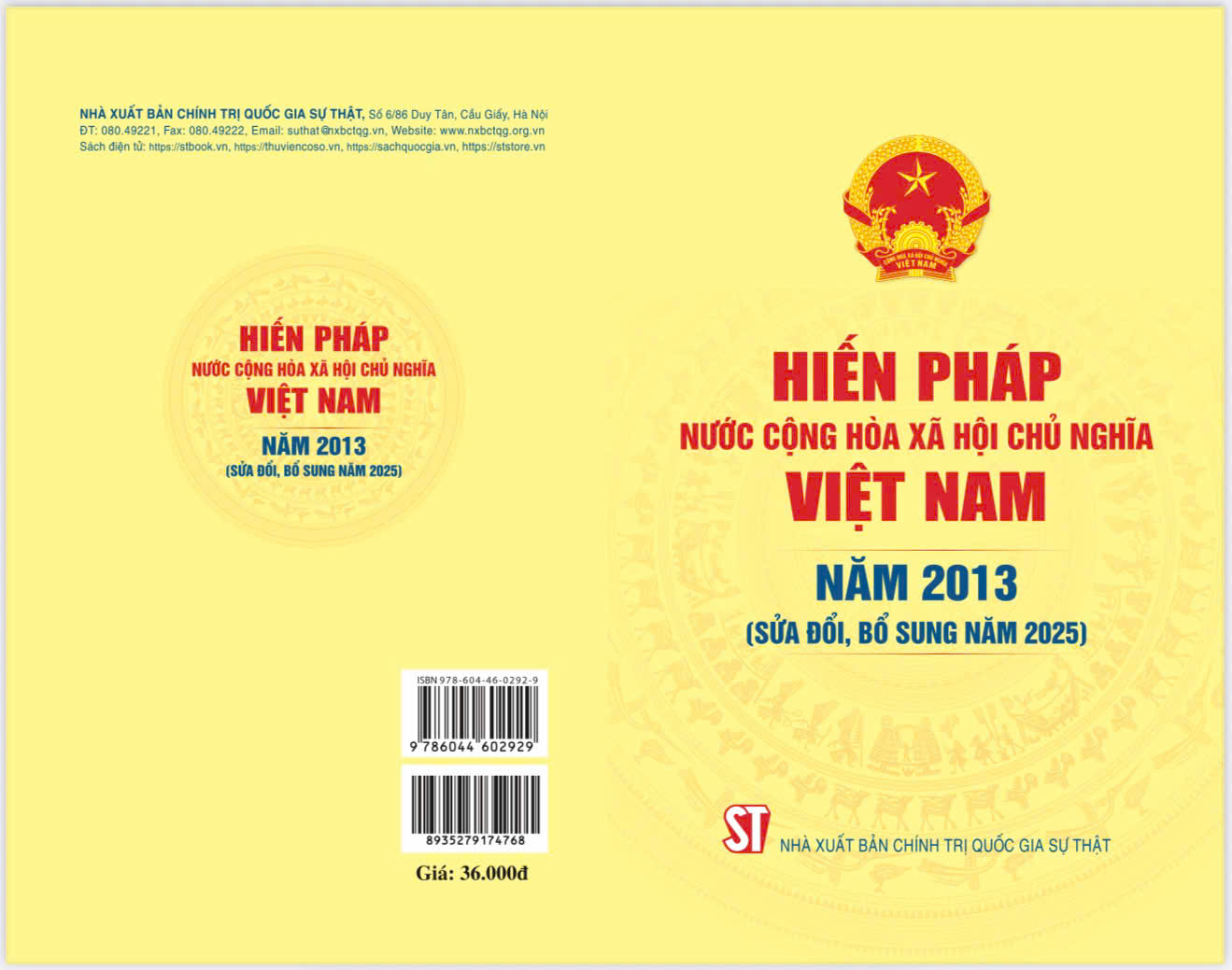 Mua tại Tiktok“Hiến pháp nước Cộng hòa xã hội chủ nghĩa Việt Nam năm 2013 (sửa đổi, bổ sung năm 2025)”, do Nhà Xuất bản Chính trị quốc gia Sự thật ấn hành, là ấn phẩm chính thống hợp nhất toàn bộ nội dung gốc của Hiến pháp 2013 và phần sửa đổi, bổ sung bởi Nghị quyết số 203/2025/QH15. Đây không chỉ là tài liệu quan trọng với các cơ quan nhà nước, cán bộ, công chức, viên chức, lực lượng vũ trang, sinh viên ngành luật - hành chính, mà còn là tài liệu phổ biến pháp luật thiết thực đối với toàn thể nhân dân.
