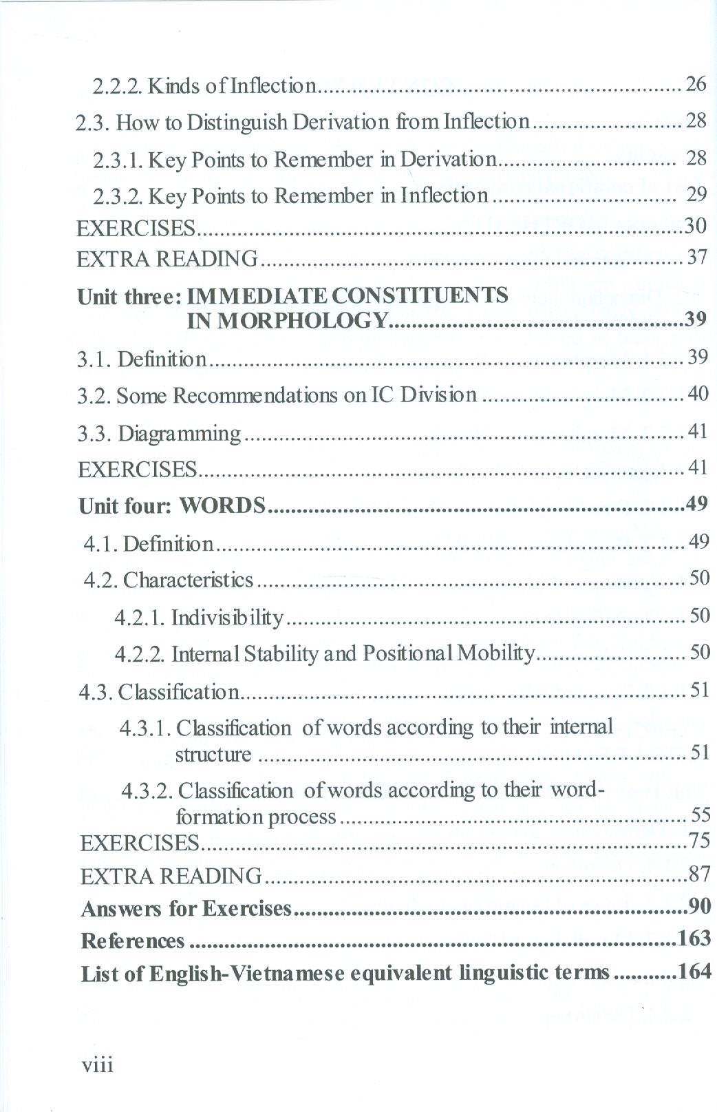 Sách có chú thích cách gọi tên được coi là tương được trong tiếng Việt của một số thuật ngữ quan trọng nhất trong Hình thái học tiếng Anh. Cuối sách còn có Danh mục thuật ngữ ngôn ngữ học Anh - Việt.