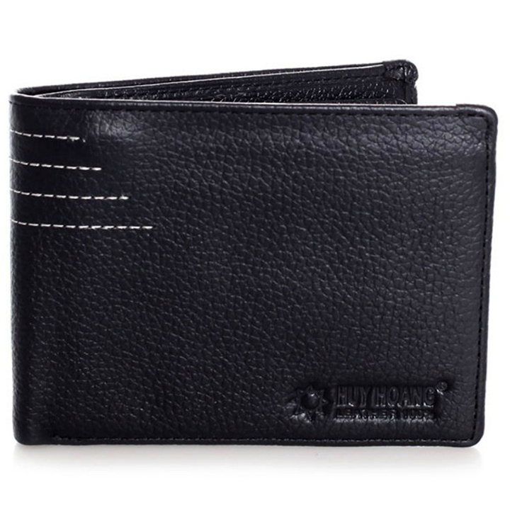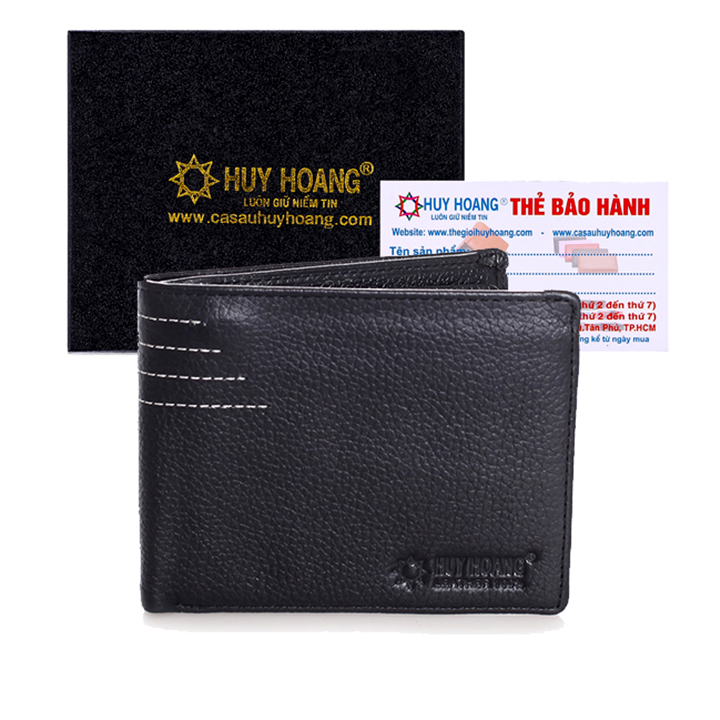 Ví/Bóp nam Huy Hoàng da bò viền chỉ màu đen 2129