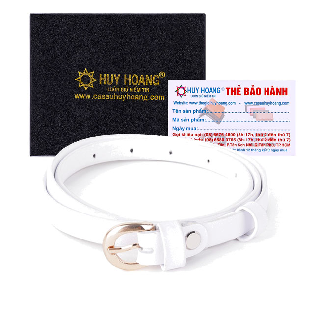 - Sản xuất tại Huy Hoàng (Việt Nam). Bộ sản phẩm bao gồm: 01 x Thắt lưng nữ Huy Hoàng 01 x Thẻ bảo hành 12 tháng (Bảo hành da, bung keo, súc chỉ) 01 x Hộp đựng Huy Hoàng Hướng dẫn bảo quản :