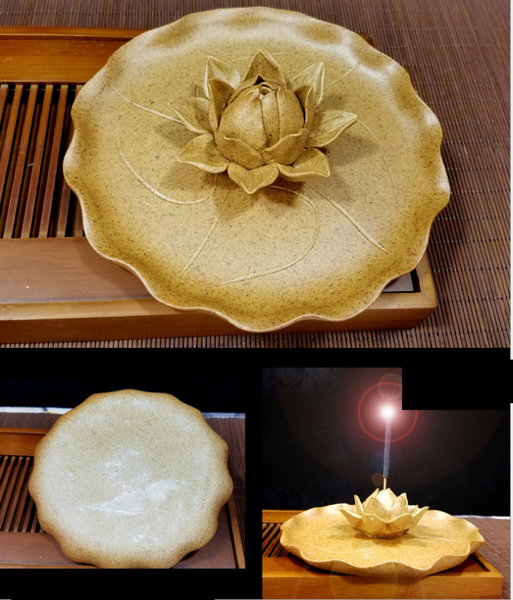 -Lư xông trầm bằng gốm có tấm lót chống nóng , chống ố vàng đáy lư , lư hương sứ kèm đế cắm được tất cả các loại nhang , giúp tạo ra bầu không