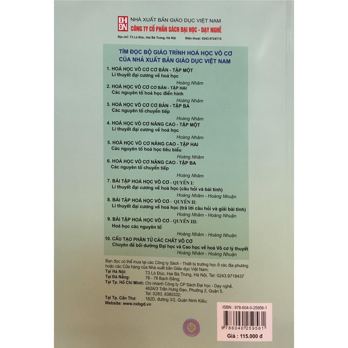 Mua tại TiktokGiáo trình Hoá học Vô cơ này đã được viết và giảng dạy từ những năm 50 của thế kỷ trước cho sinh viên khoa Hoá học trường Đại học Tổng hợp Hà Nội trước