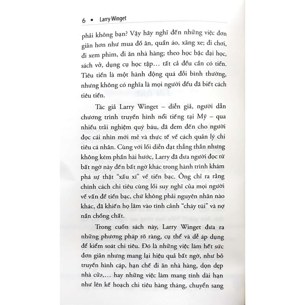 Trong cuốn sách này, Larry Winget đưa ra những phương pháp rõ ràng, cụ thể và dễ áp dụng để kiểm soát chi tiêu. Đó là những việc làm hết sức đơn giản nhưng mang lại hiệu quả bất ngờ, như bỏ truyền hình cáp, hạn chế đi ăn nhà hàng, dọn dẹp nhà cửa,… hay những việc làm mang tính dài hạn như lên kế hoạch chi tiêu hàng tháng, chuyển sang một căn hộ mới, dạy dỗ con cái về tài chính… Xen kẽ là những bài tập thực hành nho nhỏ, những câu chuyện, ví dụ đơn giản và gần gũi, giúp người đọc hiểu rõ hơn về thực trạng tài chính của bản thân và có thêm động lực để thoát khỏi tình trạng khó khăn.