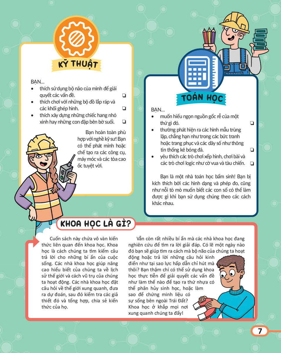 Học Và Thực Hành Stem Đơn Giản - Toán Học - Kiến Thức Kèm Bài Tập Bổ Trợ GIỚI THIỆU SÁCH: Bạn có cảm thấy tò mò về thế giới quanh mình không? Bạn có yêu thích việc đặt ra các câu hỏi và đi tìm lời giải đáp? Bạn có thích làm thí nghiệm và thử những điều mới, ngay cả khi nó đồng nghĩa với việc có thể mắc sai lầm? Nếu câu trả lời là có, vậy thì bạn có khả năng trong lĩnh vực KHOA HỌC đấy! Bạn đã sẵn sàng cho những khám phá cực kỳ thú vị trong sách chưa nào? Chúng sẽ đưa bạn từ tâm Trái Đất ra tới ngoài không gian! Bạn sẽ hoàn thành các mạch điện, khám phá tia X kỳ diệu và cảm nhận sức mạnh tuyệt vời của các lực. Dọc đường đi, bạn sẽ kiểm chứng các nguyên tố, gặp gỡ các hỗn hợp lạ kỳ, thử nghiệm các phản ứng hóa học và vô vàn những điều thú vị khác nữa đang chờ đợi bạn trong cuốn sách này đấy!