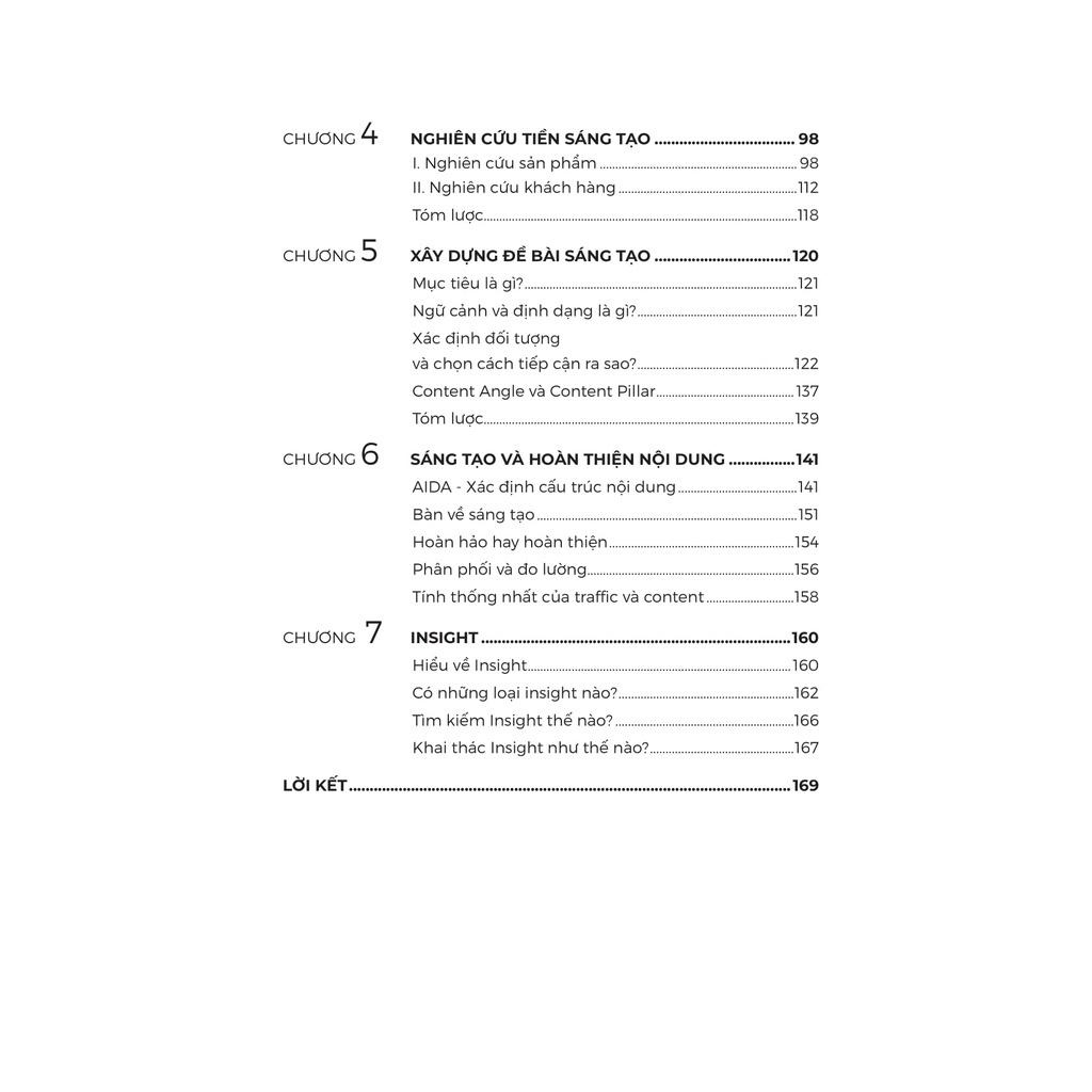 Tác giả cung cấp 8 tiêu chí phân loại content, giúp độc giả có một cái nhìn đủ rộng, để từ đó bắt đầu hành trình vào nghề một cách nhanh nhất. Tác giả cũng phân tích hành trình làm nghề điển hình mà các “con Sen” đều trải qua, chỉ ra những cạm bẫy và trở ngại cũng như các “góc khuất nhận thức” cản trở quá trình học hỏi của người làm nghề.