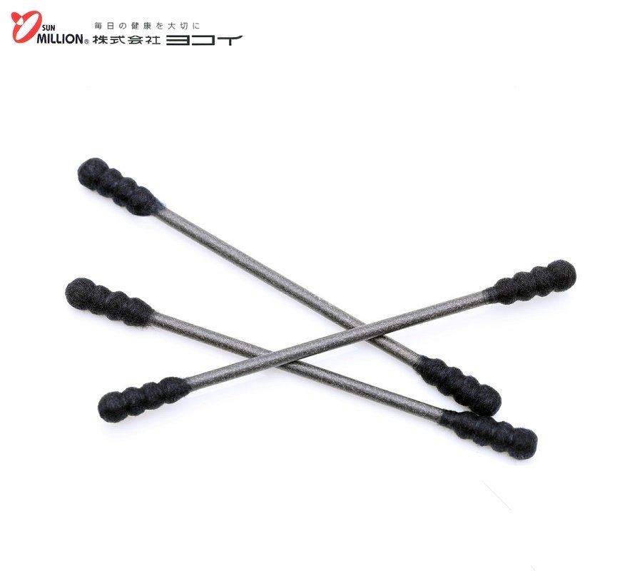 Hộp 110 chiếc tăm bông than hoạt tính cao cấp Nhật Bản Sanritsu 100% Bông gòn tự nhiên siêu mềm, kháng khuẩn, an toàn cho người sử dụng: