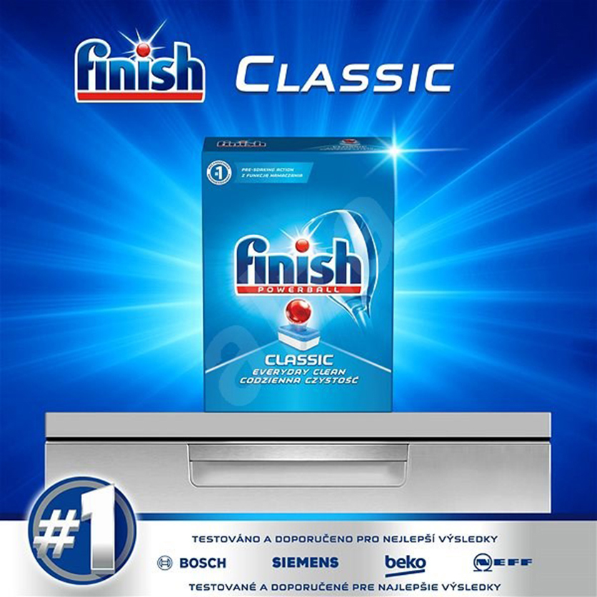 - Finish là thương hiệu rửa chén đĩa tự động số 1 Thế giới (được giới thiệu bởi hầu hết các thương hiệu máy rửa chén trên toàn Thế giới) Có thể bạn tin rằng mình đang sở hữu máy rửa chén tốt nhất với khả năng làm sạch một khối lương chén đĩa khổng lồ, nhưng bạn không nhận ra rằng công suất hoạt động của nó đang giảm dần theo thời gian. Việc sử dụng chất tẩy rửa kém chất lượng cũng là một nguyên nhân chính dẫn đến chu trình rửa của máy bị gián đoạn, không hiệu quả, gây mùi hôi và làm giảm tuổi thọ của máy rửa chén. Viên rửa chén Finish Classic Dishwasher Tablets là sự kết hợp của công thức enzyme tiên tiến với các thành phần độc đáo cùng với nhiều tính năng ưu việt, có sức mạnh tẩy sạch chất dầu mỡ và thức ăn thừa bám trên chén đĩa, các đồ sành sứ, thủy tinh, inox và các dụng cụ nhà bếp luôn như mới.