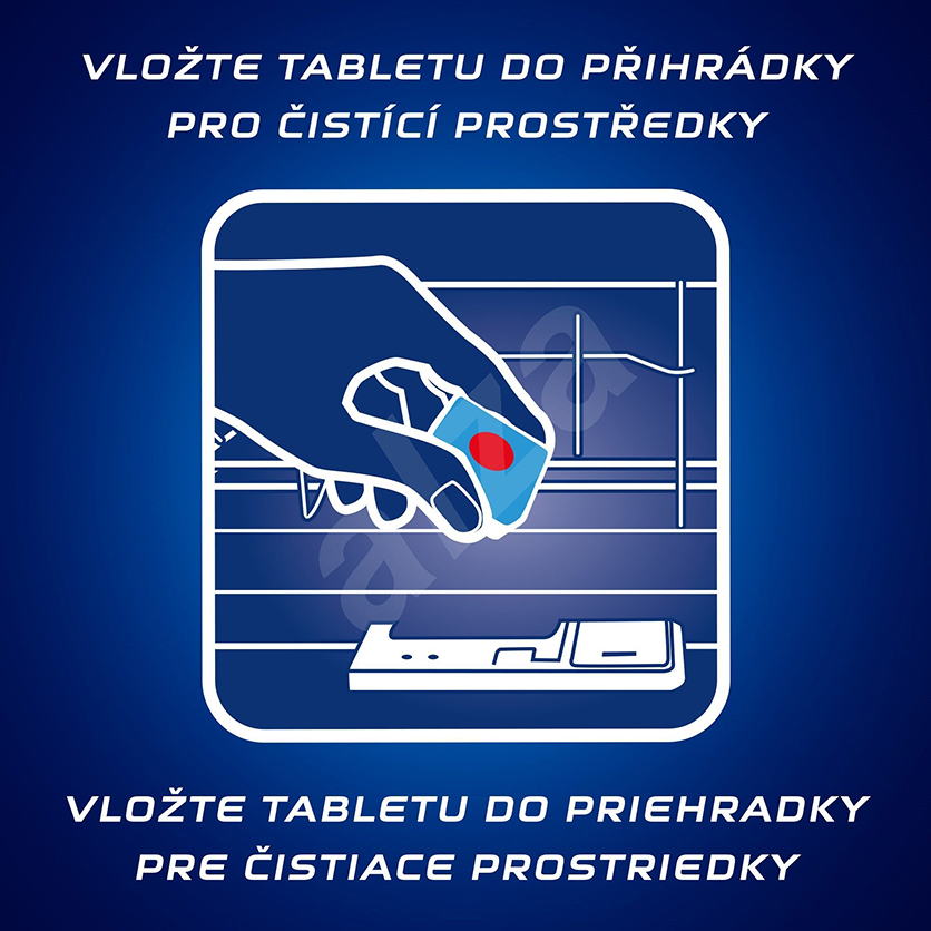- Lấy viên rửa chén Finish Classic Dishwasher Tablets ra khỏi bao bì và đặt vào ngăn chứa chất tẩy rửa của máy rửa chén