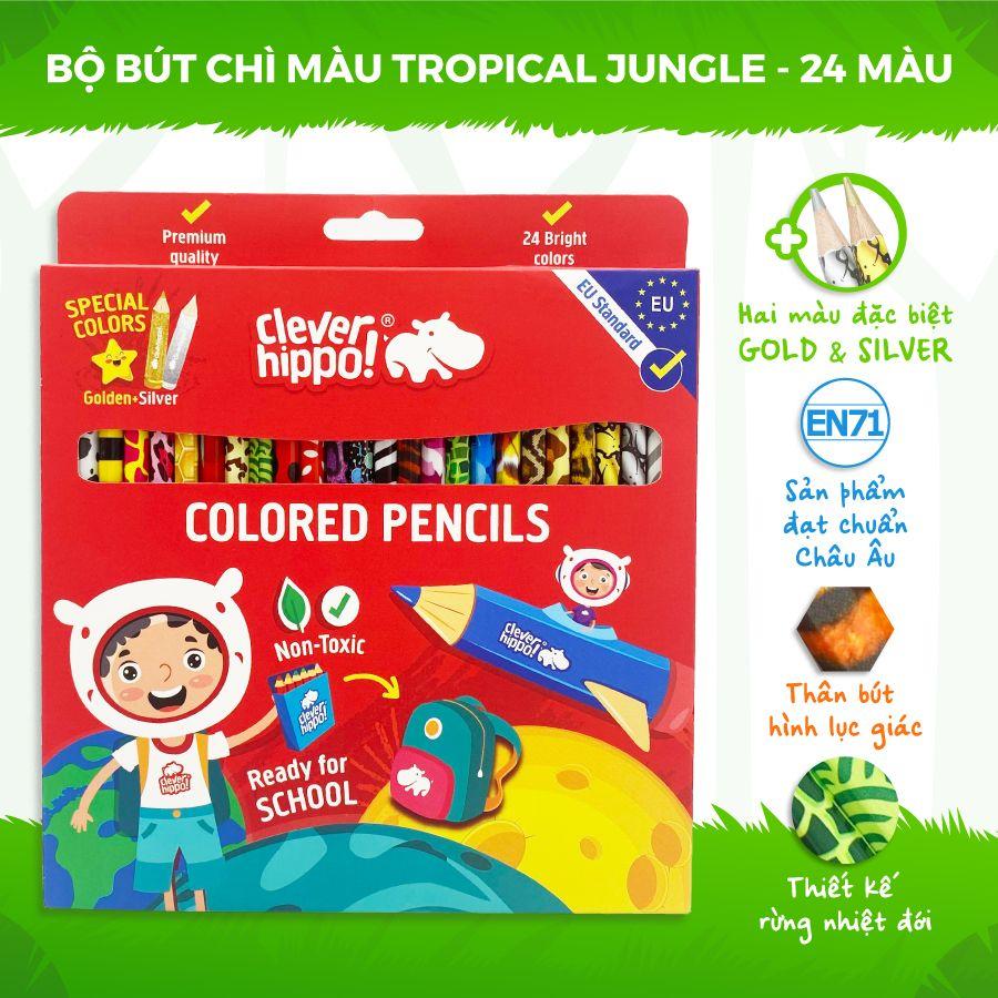 ✨Hộp 24 Bút Chì Màu Tropical Jungle - Clever Hippo COPEN2401