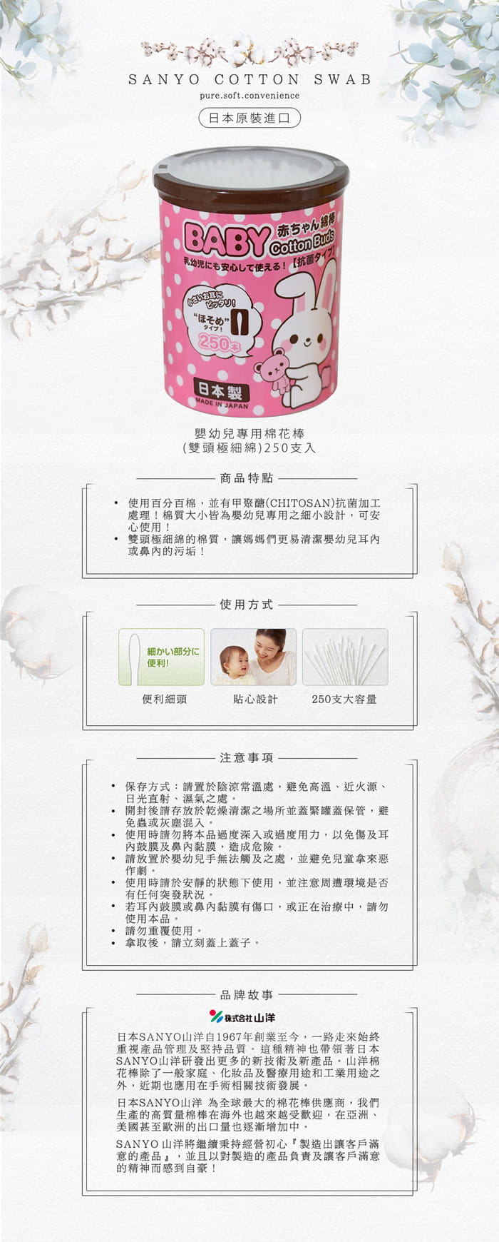 Hộp tăm bông vệ sinh tai Sanyo in họa tiết đáng yêu cho bé - Nội địa Nhật Bản: * Chất liệu: 100% Bông gòn tự nhiên mềm mại không gây đau rát khi sử