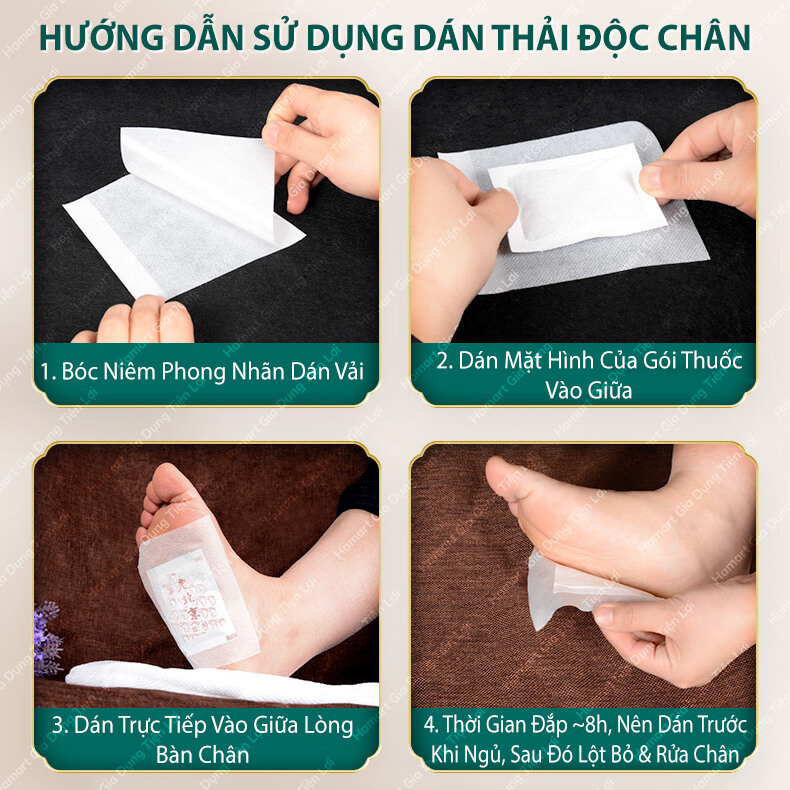 - Trước khi đi ngủ dán vào giữa gan bàn chân