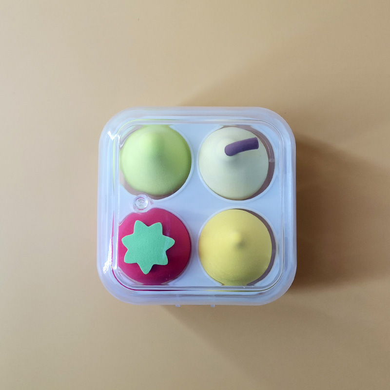 - Sét hộp 4 món tán phấn siêu mềm mại hình trái cây ,giọt nước , có độ đàn hồi cao , dẻo ,không bị biến dạng ,nhiều màu sắc cute xinh xắn đáng yêu