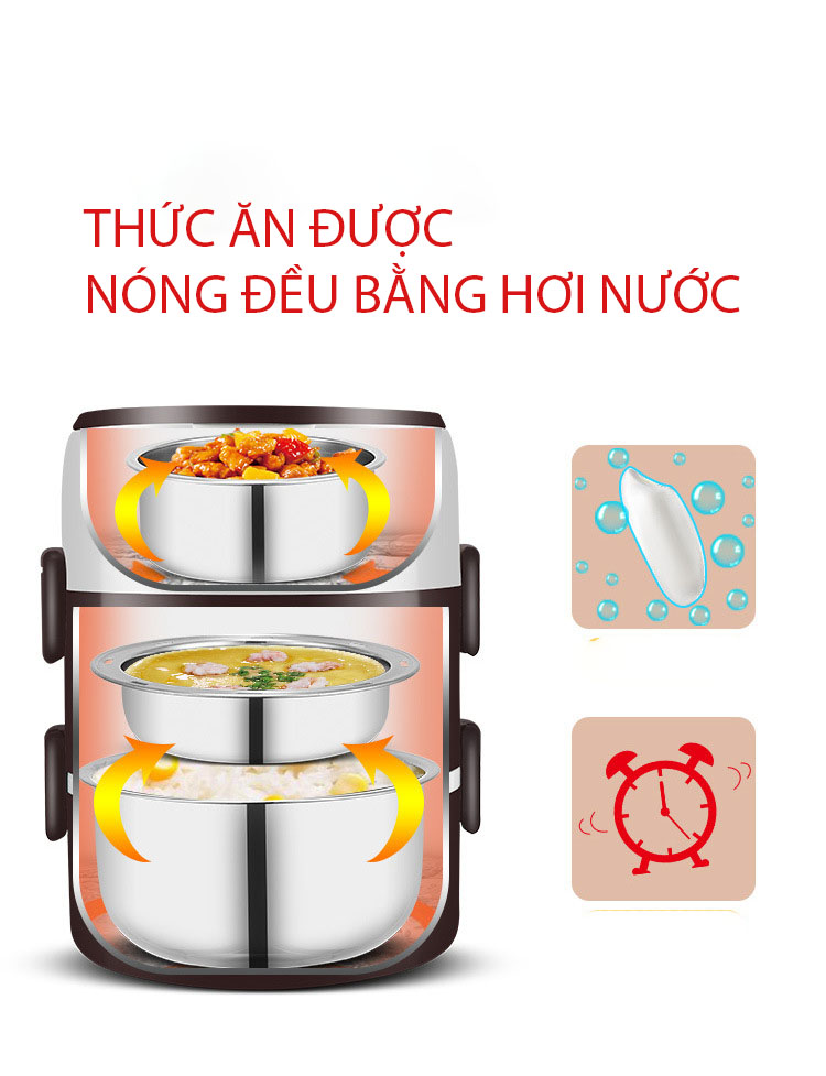 Hộp cơm hâm nóng cắm điện inox 3 tầng star hot