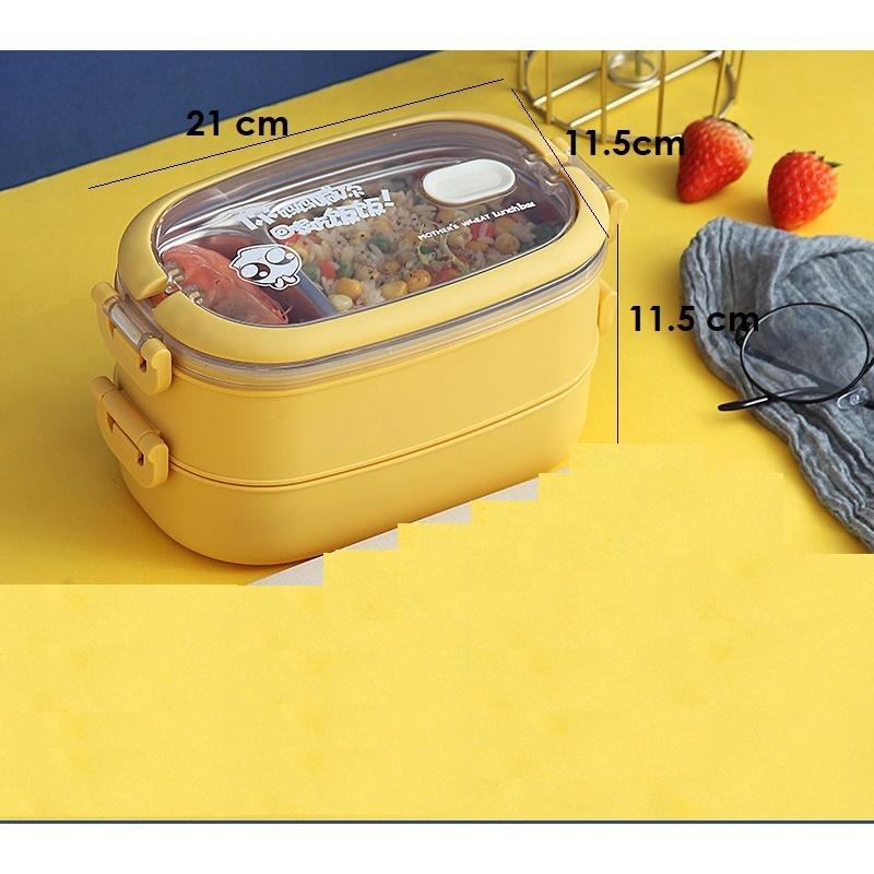 - Sản phẩm gồm: 1 HỘP CƠM 2 TẦNG KHÔNG KÈM MUỖNG ĐŨA ĐẶC ĐIỂM: -Thiết kế hiện đại, nhỏ gọn, 2 tầng 3 ngăn chứa riêng biệt; có thể tháo rời; vệ sinh dễ dàng.