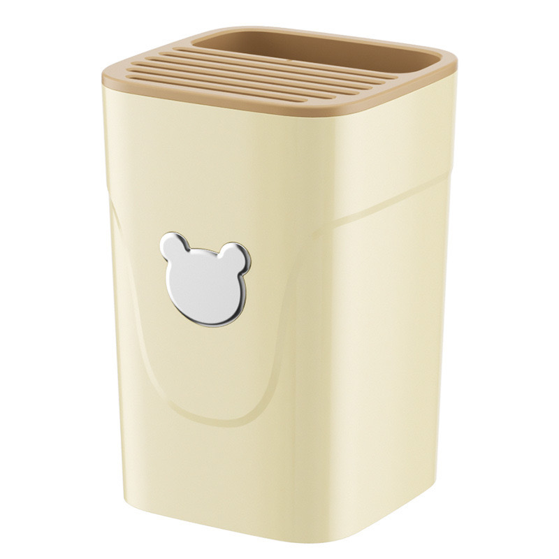 Màu sắc: Trắng và Vàng nâu kích thước:13.5x13.5x20cm Chất liệu: Nhựa PP Công dụng: để đũa, muỗng, dao, kéo, các dụng cụ nấu ăn khác. Sản phẩm: gồm 1 hộp đựng (không bao gồm dao