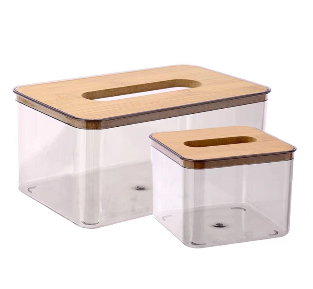 Hộp Đựng Giấy Ăn Khăn Giấy Nhựa MiKa Trong Suốt Nắp Gỗ Tre Tự Nhiên Màu Sắc Kiểu Dáng Phong Cách Bắc Âu